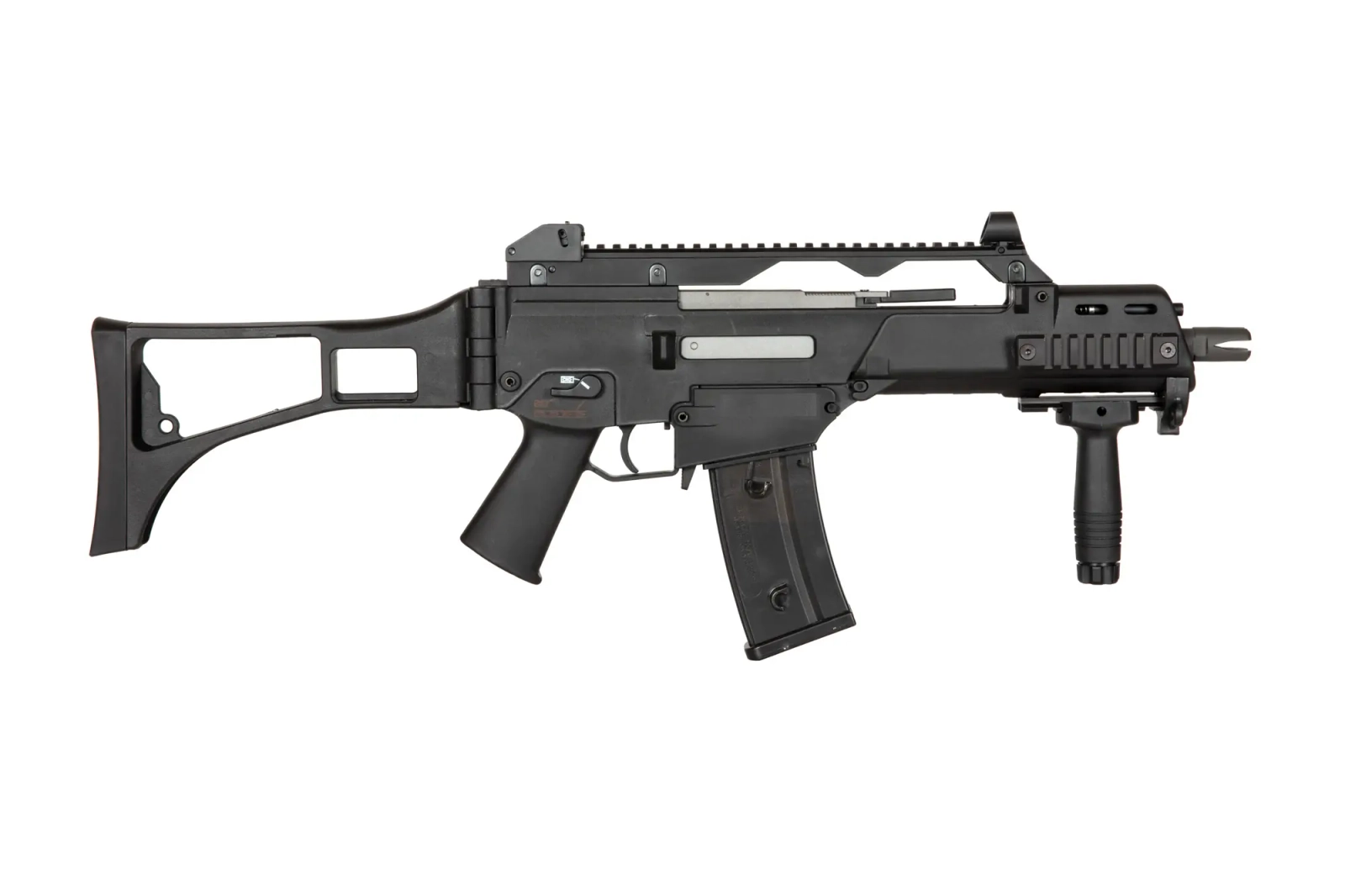 Replikę charakteryzuje bardzo dobre spasowanie, wykonano ją z przyjemnego dla oka matowego polimeru. Ważniejsze elementy połączono pinami, w ten sposób możemy zmieniać poszczególne elementy jak chociażby gniazdo magazynków. Wykonany z solidnego polimeru korpus repliki posiada indywidualny numer seryjny, oznaczenia producenta oraz estetyczne oznaczenia selektora ognia. Na grzbiecie repliki zastosowano klasyczny chwyt transportowy z szyną RIS 22mm a także regulowane, stałe przyrządy celownicze. Replika posiada składaną na bok kolbę co ułatwi transport a także operowanie w ciasnych pomieszczeniach budynków. Metalową lufę repliki zakończono tłumikiem płomieni osadzonym na gwincie 14mm CW.