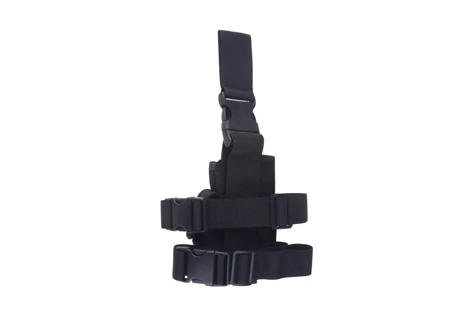 Nylonowa, uniwersalna kabura z ładownicą na magazynek. Zastosowanie rzepów pozwala na dostosowanie i wyregulowanie kabury do pistoletu. Pasy regulacją, do przymocowania na udo zapinane są przy pomocy klamer. Użytkownik może również całkowicie wypiąć pasy, w zależności od swoich potrzeb. Na grzbiecie kabury znajduje się ładownica na magazynek. Pas mocujący przeznaczony do mocowania na pasie biodrowym również posiada klamrę pozwalającą na szybkie odpięcie kabury od pasa.