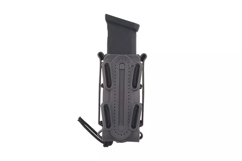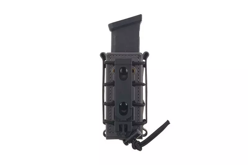 Wykonana ze specjalnego, wytrzymałego ale i elastycznego tworzywa sztucznego ładownica typu fast mieszcząca jeden magazynek pistoletowy/dwurzędowy. Ładownica wyposażona jest w specjalną elastyczną linkę do regulacji "rozwarcia" ładownicy która lepiej dopasowuje ładownicę do zawartości i nie pozwala magazynkom wypaść. Ładownicę zamontować można na pasach o maksymalnej szerokości 45mm i na oporządzeniu zgodnym z systemem MOLLE.