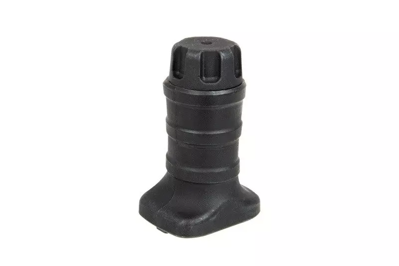 Chwyt został wykonany z wytrzymałego tworzywa. Montaż w standardzie Kymod. W środku znajduje się pojemnik na zapasowe baterie. Zwiększa kontrolę nad karabinem oraz daje pewniejszy chwyt.