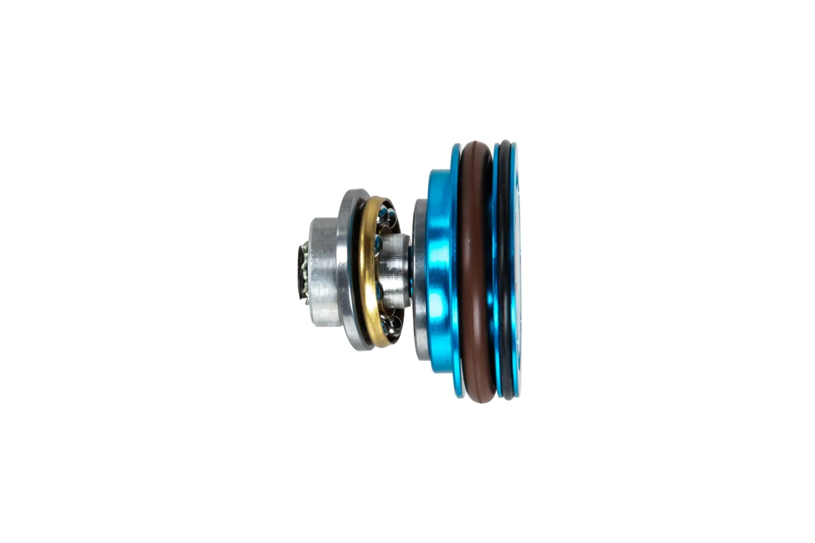 Wysokiej jakości, wykonana z aluminium na maszynach CNC podwójnie doszczelniona, łożyskowana głowica tłoka. Zastosowanie łożyskowania zapobiega zbijaniu się sprężyny, a co za tym idzie pozwala na utrzymanie stałej prędkości wylotowej przez dłuższy czas użytkowania.