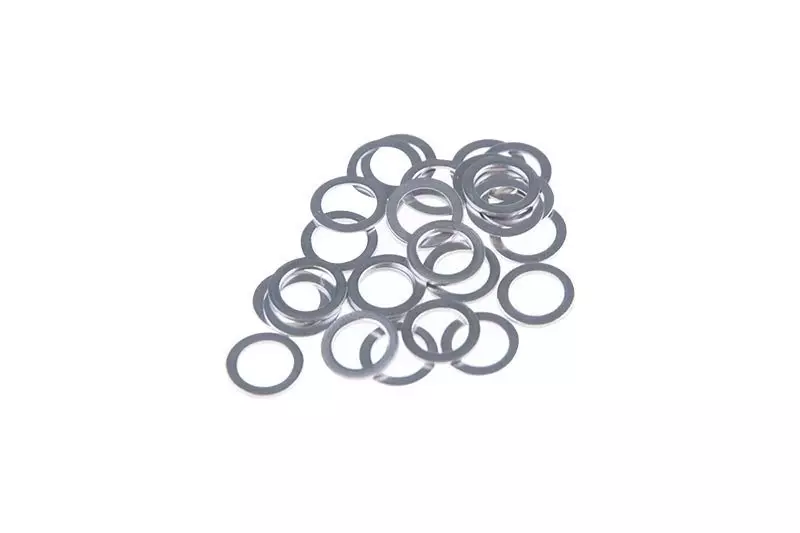 Zestaw wykonanych ze stali podkładek do kół zębatych w gearboxie.