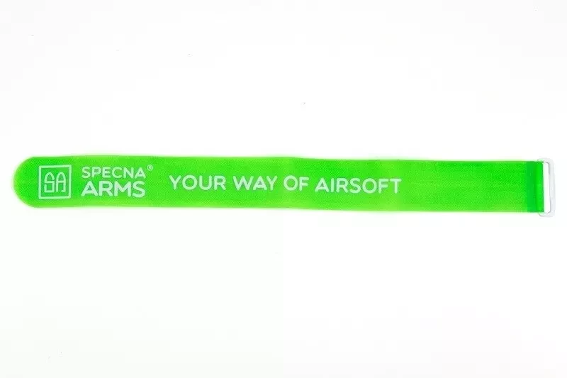 Opaska została wykonana z taśmy z rzepem, dzięki czemu możemy ją szybko i łatwo zamocować na ramieniu gracza. Użycie opasek drużynowych Specna Arms pozwoli na sprawny podział oraz identyfikację graczy podczas airsoftowych rozgrywek i symulacji.