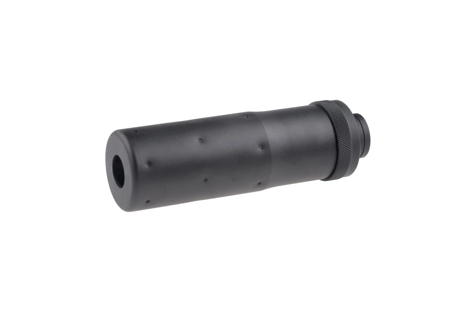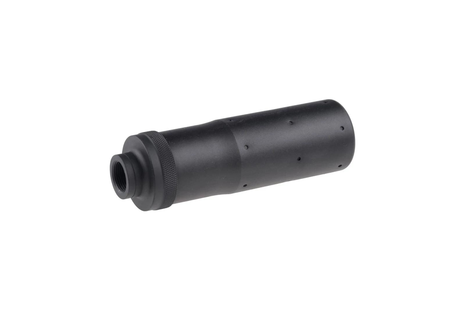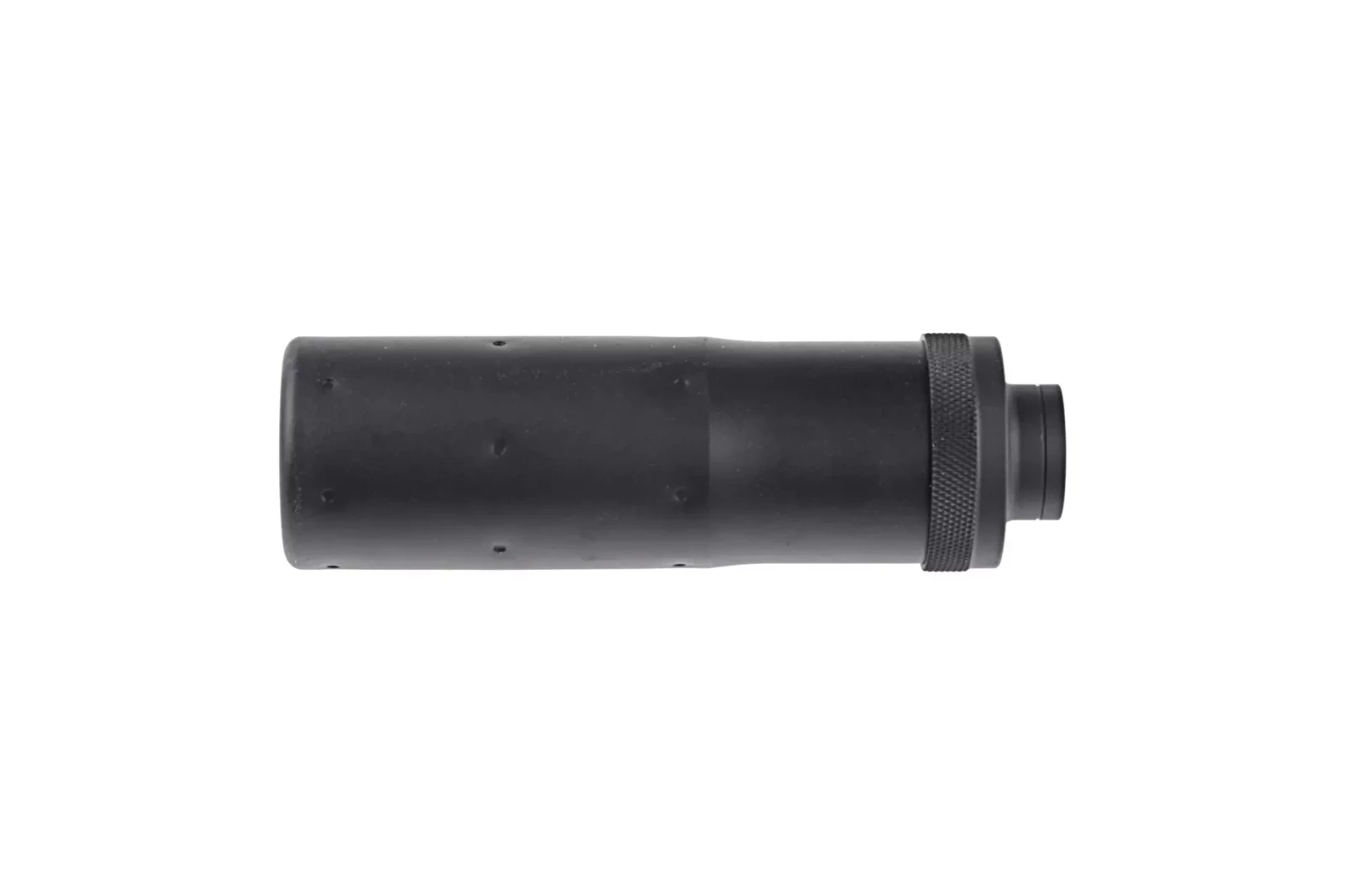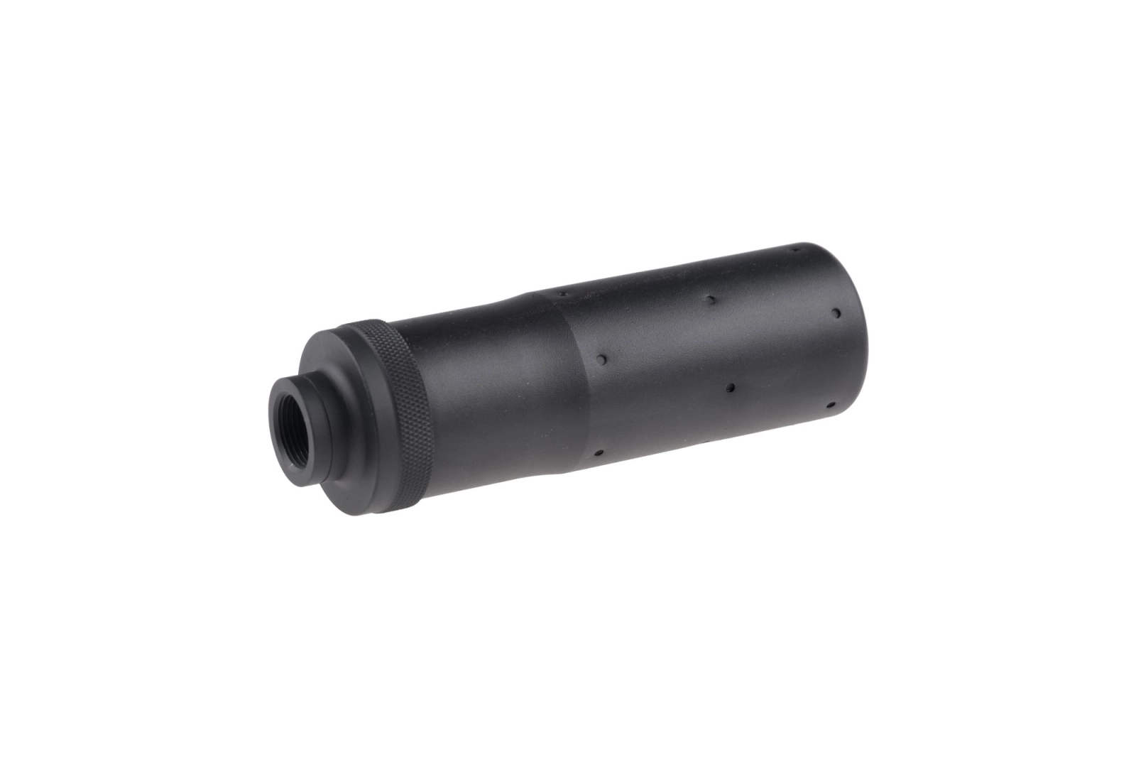 Krótki tłumik płomieni o długość 110mm został wykonany z metalu. Produkt dedykowany jest do montażu na lufach wyposażonych w 14 milimetrowy gwint lewoskrętny.