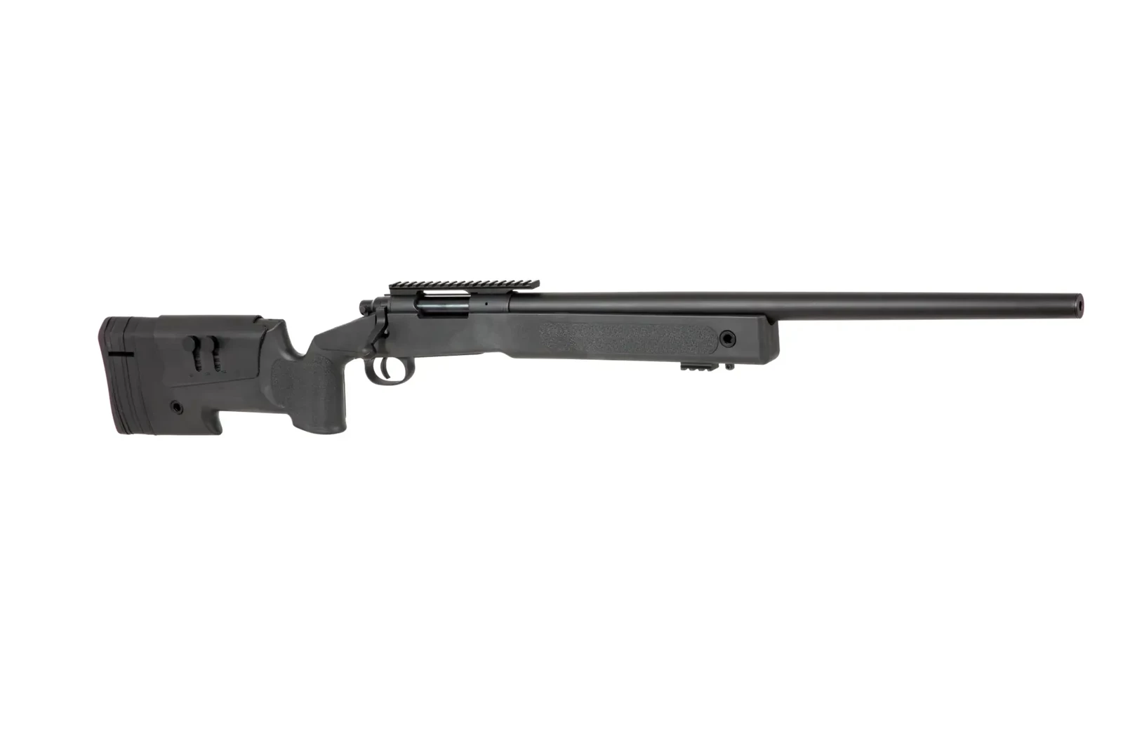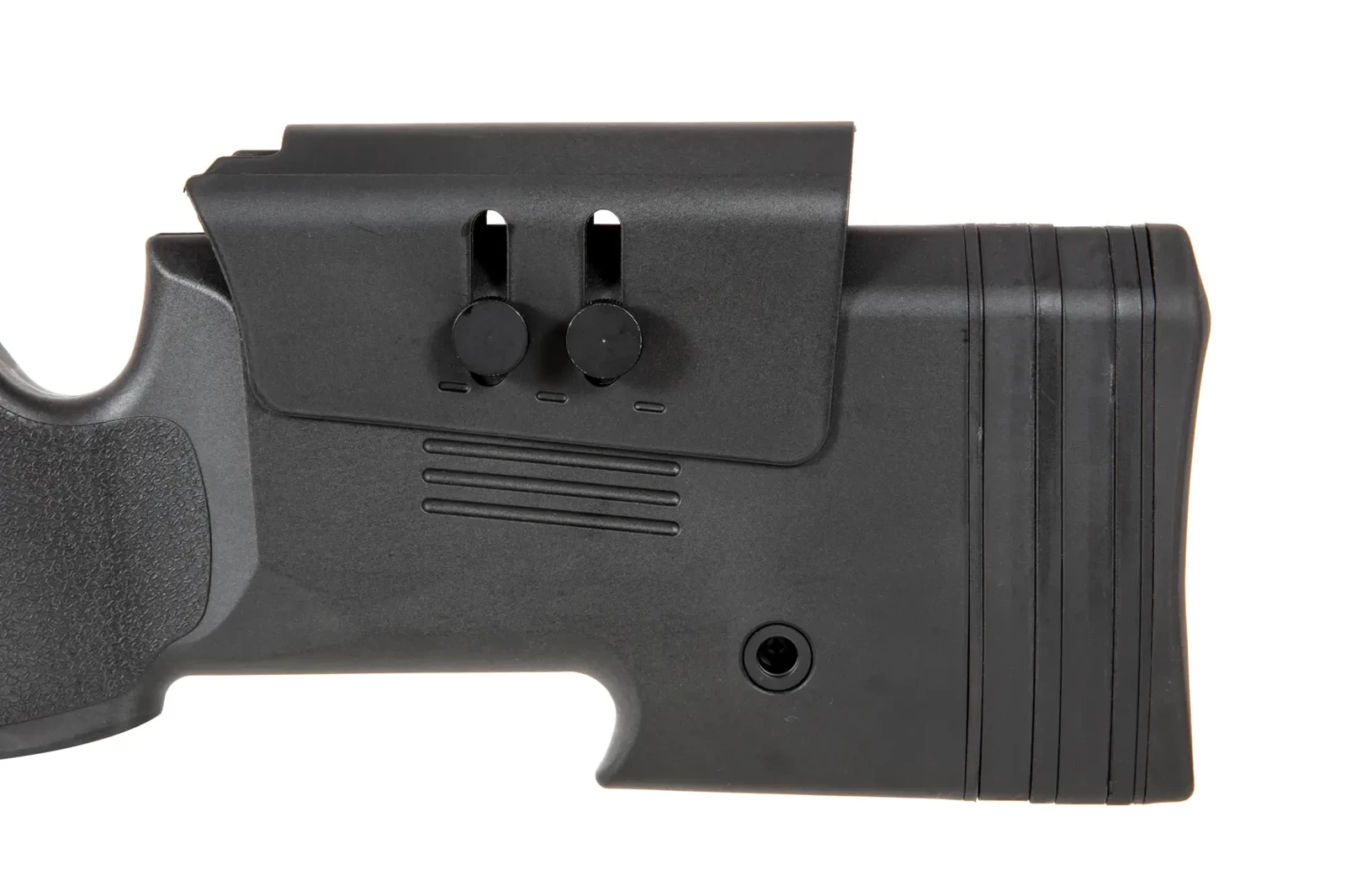 Replikę snajperską Specna Arms wyposażono w prosty i niezawodny mechanizm czterotaktowy, który należy przeładować przed oddaniem każdego strzału. Replika wykonana została z metalu oraz wzmocnionego tworzywa sztucznego. Metalowy jest tu cały zespół lufy zewnętrznej wraz z komorą zamkową, spustem i rączką przeładowania, a także szyny akcesoryjne RIS / Picatinny i wszystkie elementy montażowe, takie jak śruby. Łoże z kolbą, bakę policzkową, stopkę kolby i magazynek wykonano z solidnego tworzywa sztucznego. Sama stopka kolby zakończona została wygodną, gumową nakładką, jej grubość można regulować dzięki kompletowi wymiennych nakładek. W połączeniu z regulowaną baką policzkową daje to możliwość dopasowania kolby do preferencji strzelca.