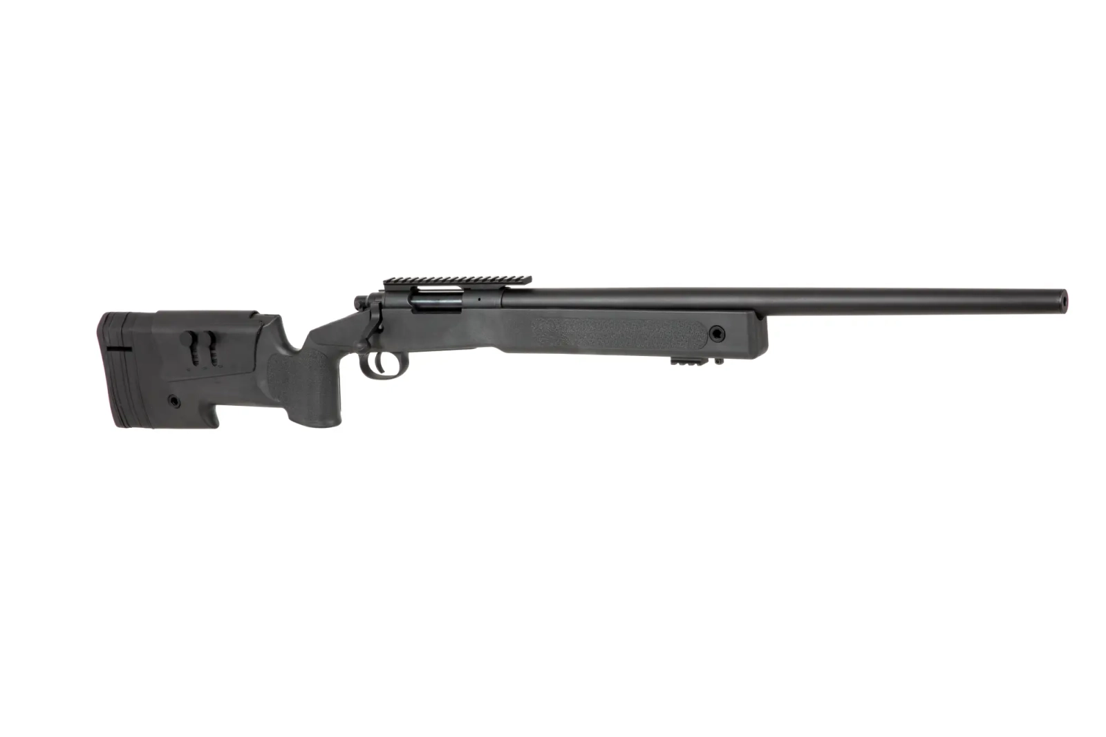 Replikę snajperską Specna Arms wyposażono w prosty i niezawodny mechanizm czterotaktowy, który należy przeładować przed oddaniem każdego strzału. Replika wykonana została z metalu oraz wzmocnionego tworzywa sztucznego. Metalowy jest tu cały zespół lufy zewnętrznej wraz z komorą zamkową, spustem i rączką przeładowania, a także szyny akcesoryjne RIS / Picatinny i wszystkie elementy montażowe, takie jak śruby. Łoże z kolbą, bakę policzkową, stopkę kolby i magazynek wykonano z solidnego tworzywa sztucznego. Sama stopka kolby zakończona została wygodną, gumową nakładką, jej grubość można regulować dzięki kompletowi wymiennych nakładek. W połączeniu z regulowaną baką policzkową daje to możliwość dopasowania kolby do preferencji strzelca.