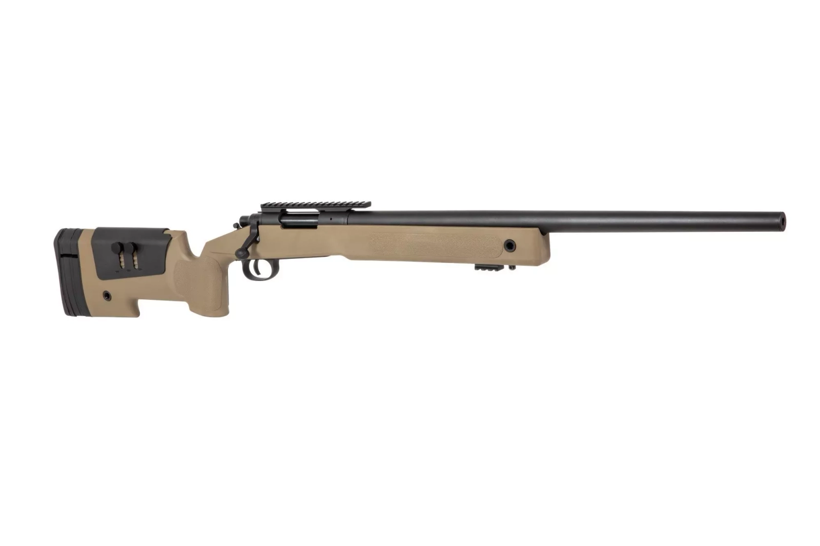 Replikę snajperską Specna Arms wyposażono w prosty i niezawodny mechanizm czterotaktowy, który należy przeładować przed oddaniem każdego strzału. Replika wykonana została z metalu oraz wzmocnionego tworzywa sztucznego. Metalowy jest tu cały zespół lufy zewnętrznej wraz z komorą zamkową, spustem i rączką przeładowania, a także szyny akcesoryjne RIS / Picatinny i wszystkie elementy montażowe, takie jak śruby. Łoże z kolbą, bakę policzkową, stopkę kolby i magazynek wykonano z solidnego tworzywa sztucznego. Sama stopka kolby zakończona została wygodną, gumową nakładką, jej grubość można regulować dzięki kompletowi wymiennych nakładek. W połączeniu z regulowaną baką policzkową daje to możliwość dopasowania kolby do preferencji strzelca.