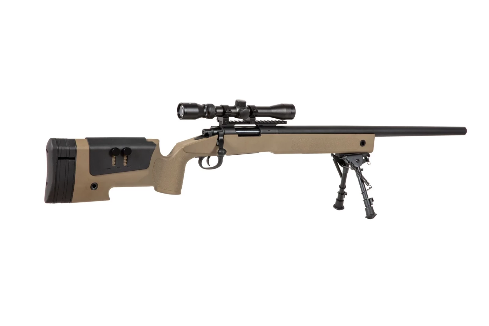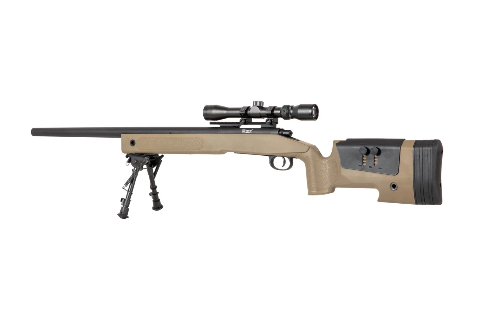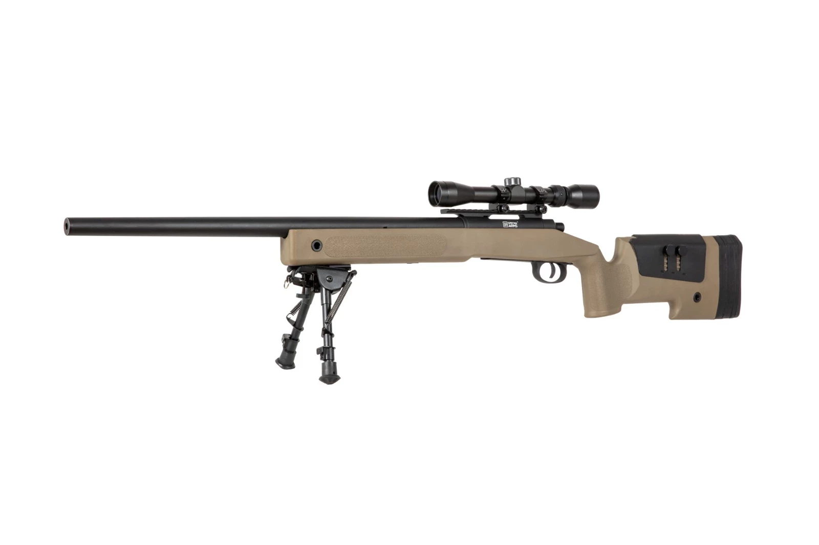Replika karabinu wyborowego SA-S02 CORE™ z lunetą i dwójnogiem - tan