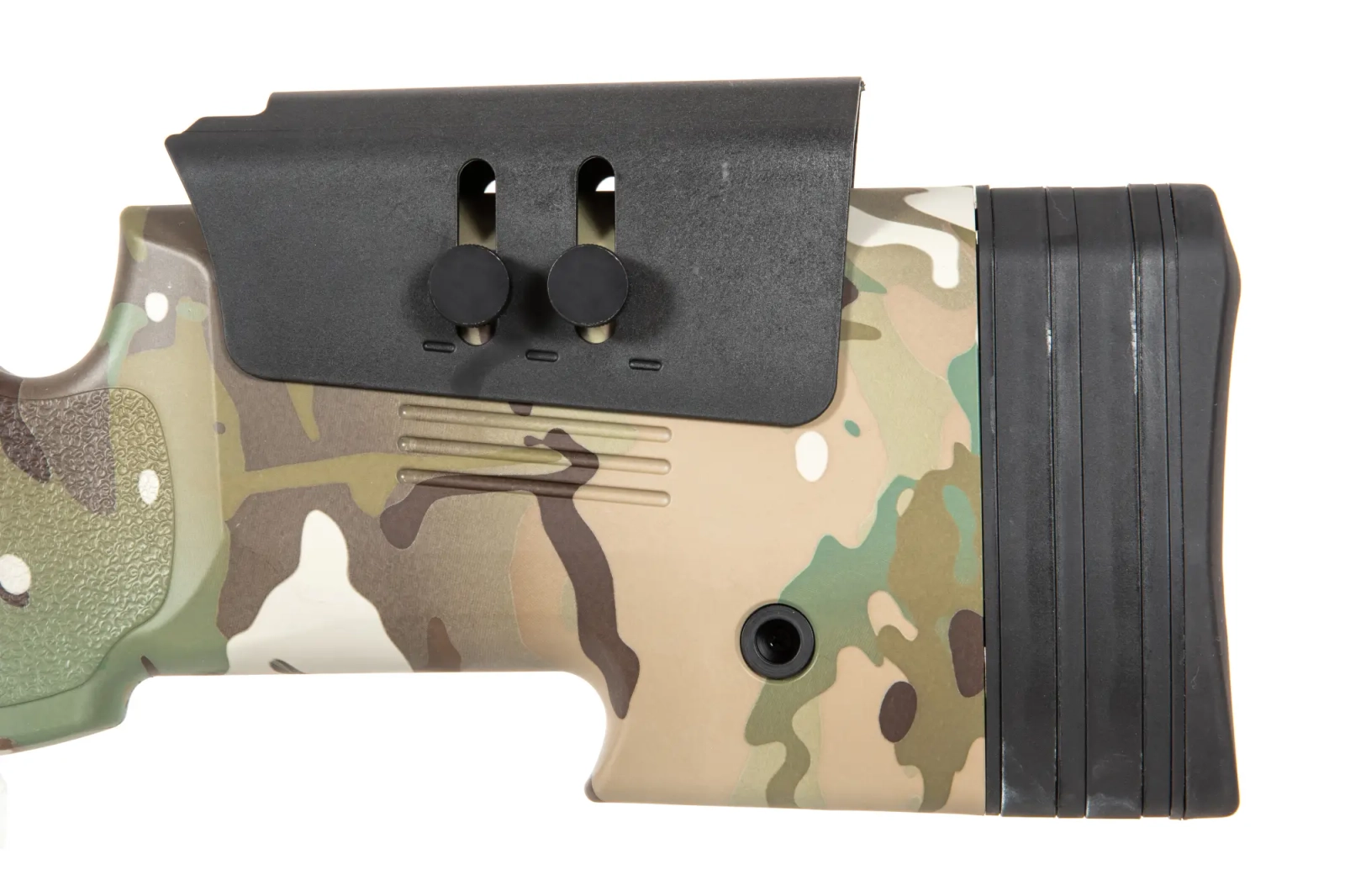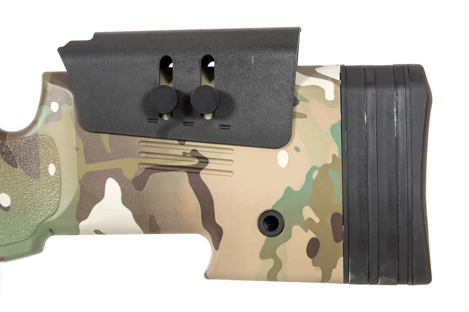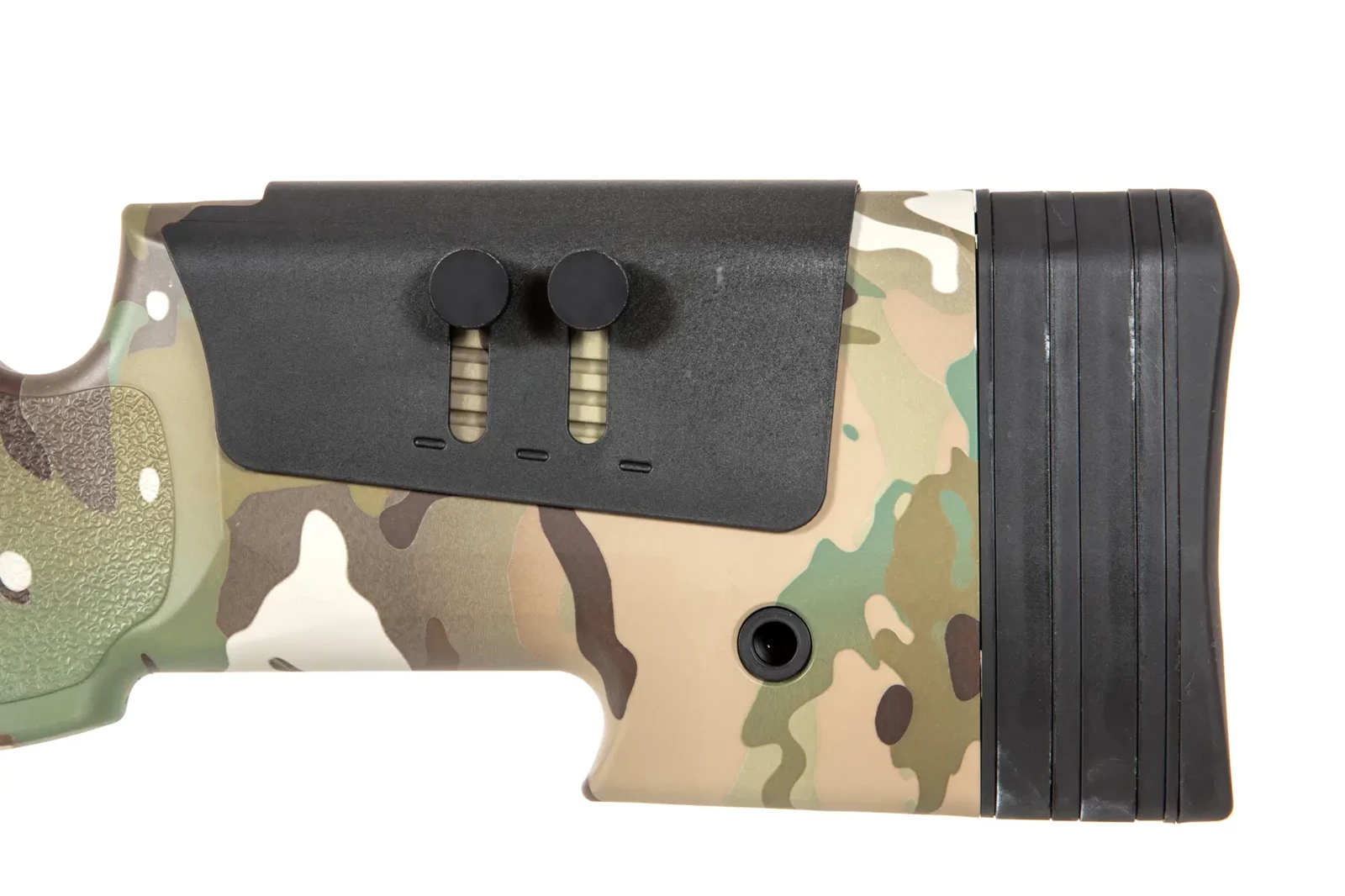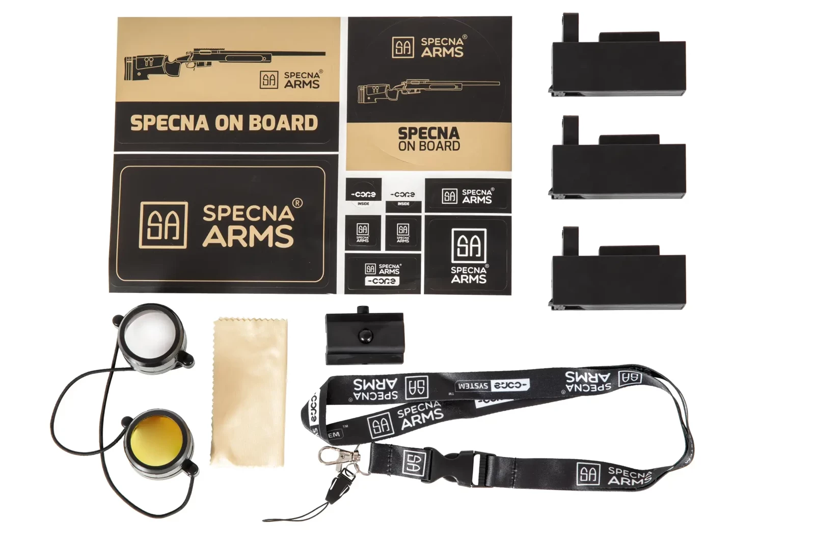 Replikę snajperską Specna Arms wyposażono w prosty i niezawodny mechanizm czterotaktowy, który należy przeładować przed oddaniem każdego strzału. Replika wykonana została z metalu oraz wzmocnionego tworzywa sztucznego. Metalowy jest tu cały zespół lufy zewnętrznej wraz z komorą zamkową, spustem i rączką przeładowania, a także szyny akcesoryjne RIS / Picatinny i wszystkie elementy montażowe, takie jak śruby. Łoże z kolbą, bakę policzkową, stopkę kolby i magazynek wykonano z solidnego tworzywa sztucznego. Sama stopka kolby zakończona została wygodną, gumową nakładką, jej grubość można regulować dzięki kompletowi wymiennych nakładek. W połączeniu z regulowaną baką policzkową daje to możliwość dopasowania kolby do preferencji strzelca.