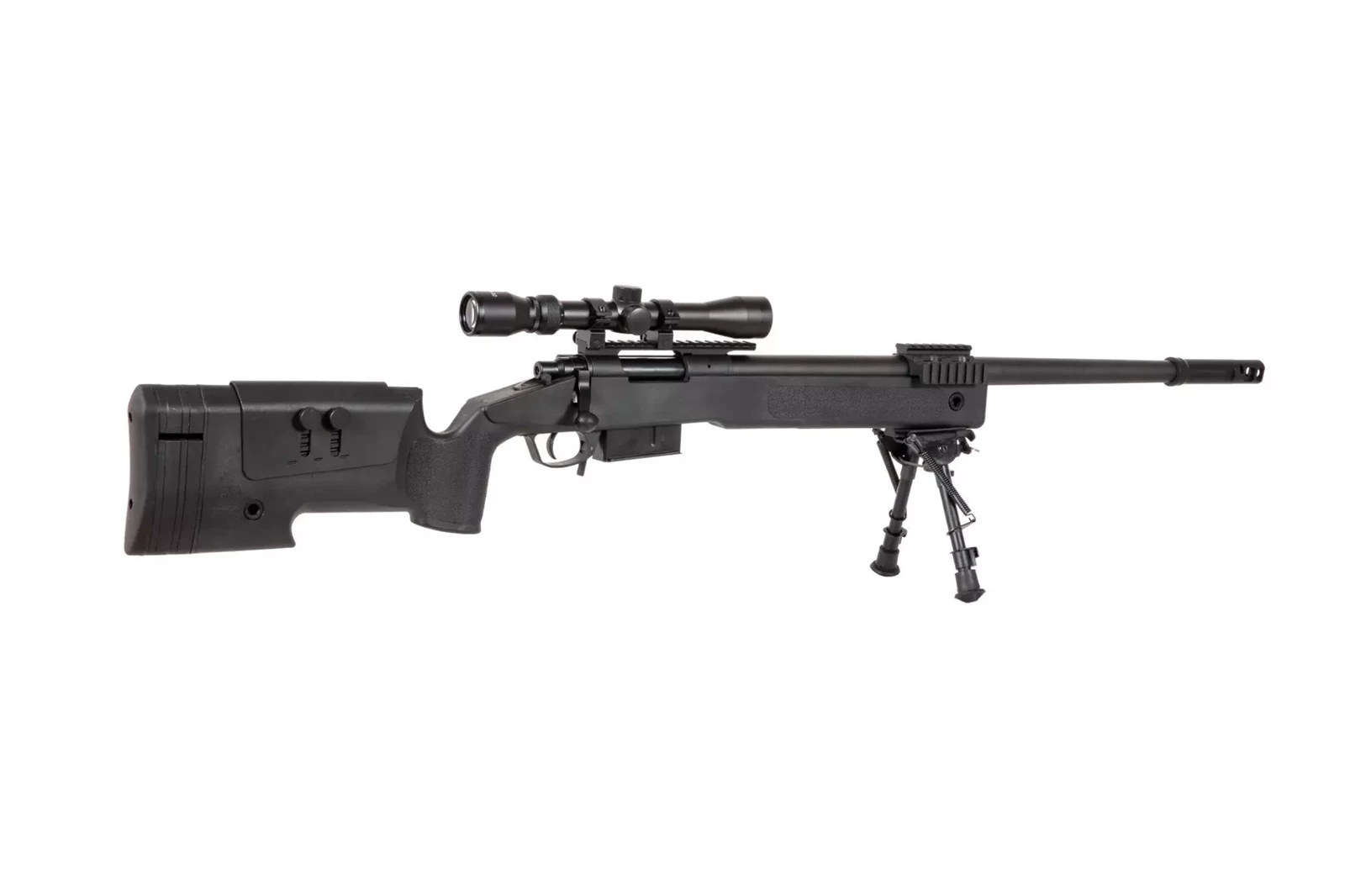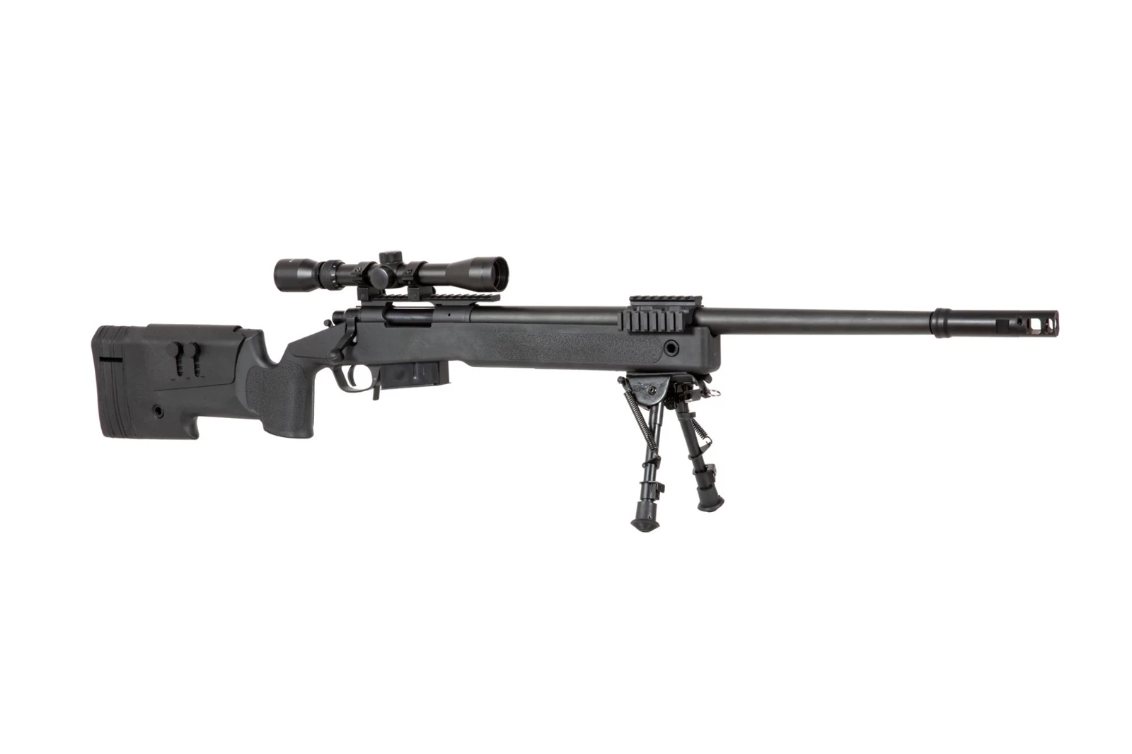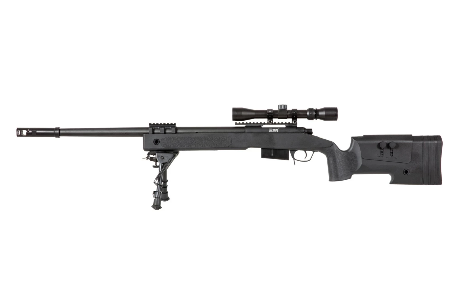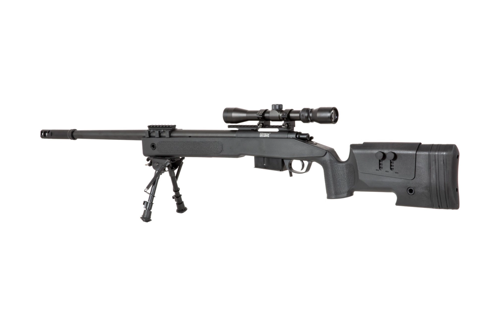 Replika karabinu wyborowego SA-S03 CORE™ z lunetą i dwójnogiem - czarna