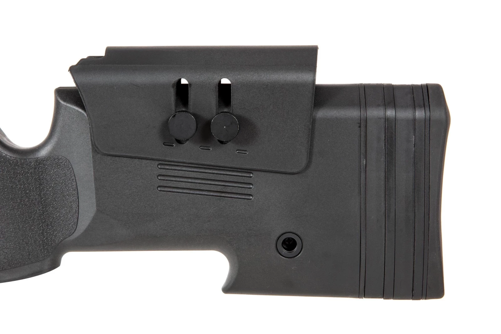 Replikę snajperską Specna Arms wyposażono w prosty i niezawodny mechanizm czterotaktowy, który należy przeładować przed oddaniem każdego strzału. Replika wykonana została z metalu oraz wzmocnionego tworzywa sztucznego. Metalowy jest tu cały zespół lufy zewnętrznej wraz z komorą zamkową, spustem i rączką przeładowania, a także szyny akcesoryjne RIS / Picatinny i wszystkie elementy montażowe, takie jak śruby. Replika posiada także specjalną, polimerową szynę montażową RIS którą umieszcza się na łożu, nad lufą w przedniej części repliki. Szyna ta pozwoli na montaż dodatkowych akcesoriów jak chociażby puszki AN/PEQ. Łoże z kolbą, bakę policzkową, stopkę kolby i magazynek wykonano z solidnego tworzywa sztucznego. Sama stopka kolby zakończona została wygodną, gumową nakładką, jej grubość można regulować dzięki kompletowi wymiennych nakładek. W połączeniu z regulowaną baką policzkową daje to możliwość dopasowania kolby do preferencji strzelca.