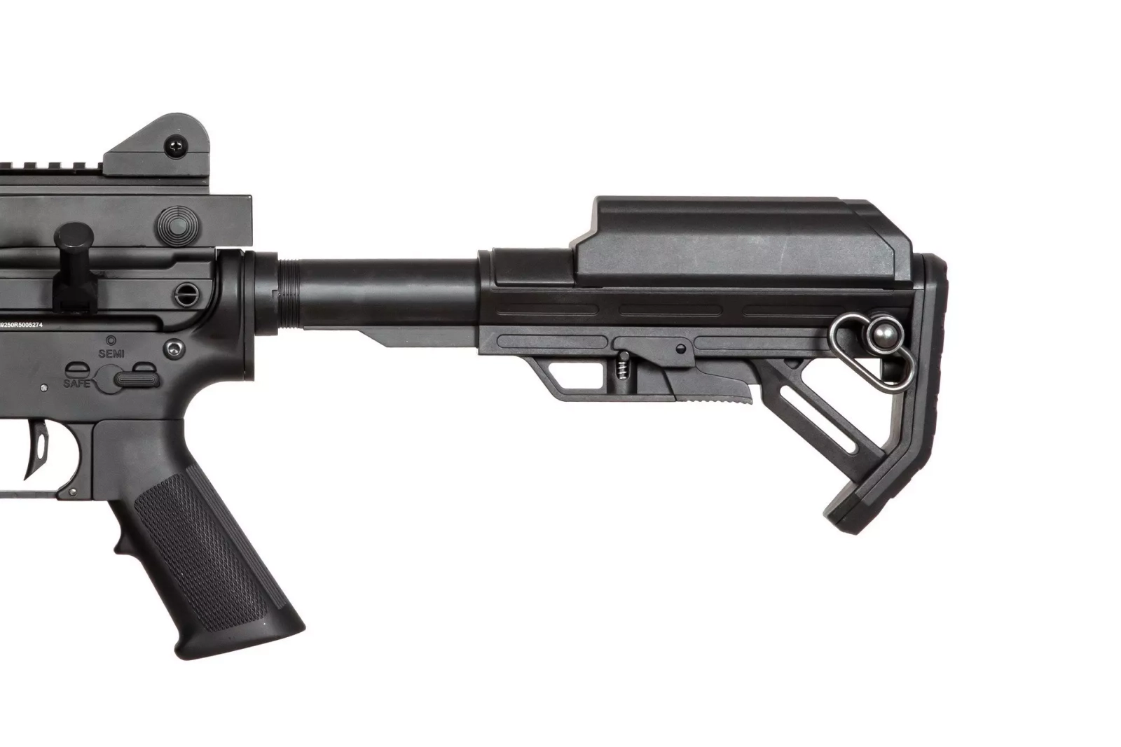 Z wytrzymałego tworzywa sztucznego wykonano zaś chwyt pistoletowy i regulowaną kolbę mieszczącą akumulator oraz magazynek elektryczny mieszczący aż 2500 kulek.