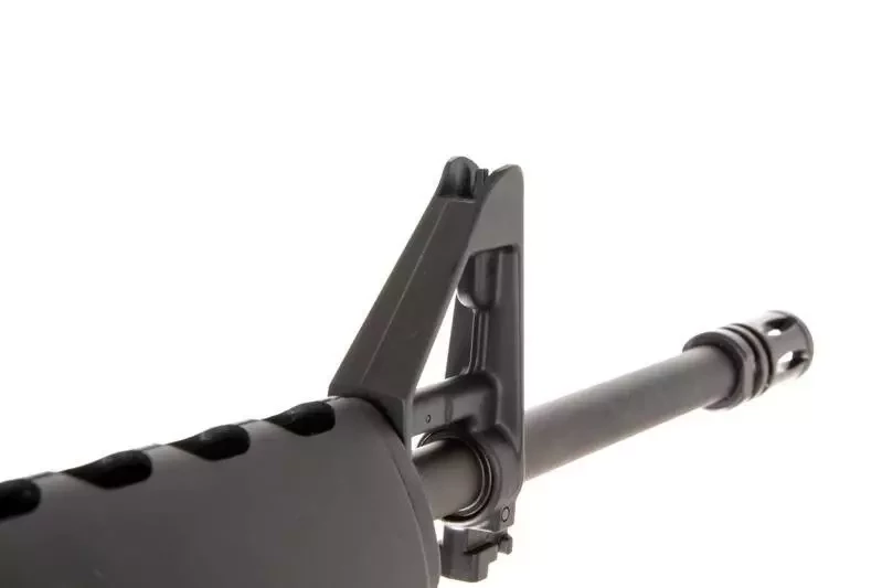 Replika, jak w swoim palnym odpowiedniku nie posiada grzbietowej szyny RIS. Można jednak dopasować specjalną szynę przeznaczoną do montażu na chwytach transportowych. Pojemnik na duży akumulator znajduje się w kolbie repliki.
