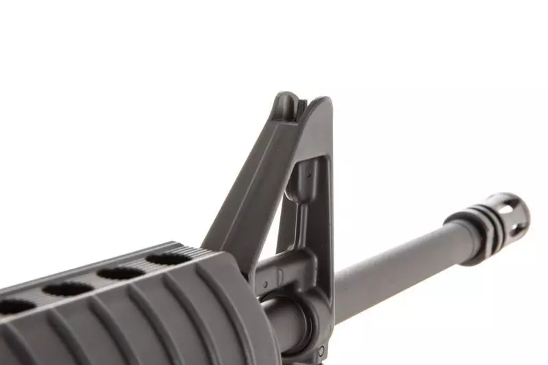 Karabinek posiada regulowany system hop-up, do którego możemy się dostać poprzez odciągnięcie dźwigni przeładowania, która otwiera klapkę wyrzutnika łusek kryjącego pokrętło regulacji.