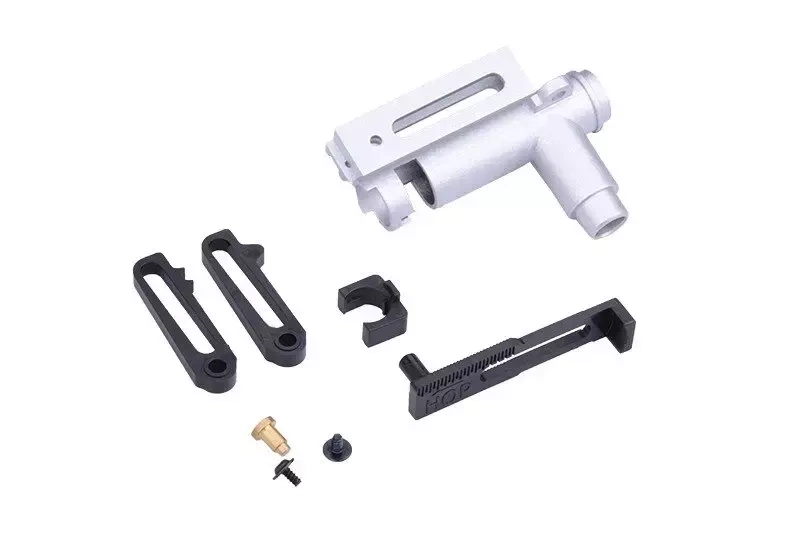 Wykonana z metalu komora hop-up przeznaczona do replik typu AK. W zestawie znajduje się tradycyjne ramię z wycięciem na dystanser jak i wersja z jednolitym, plastikowym dystanserem.