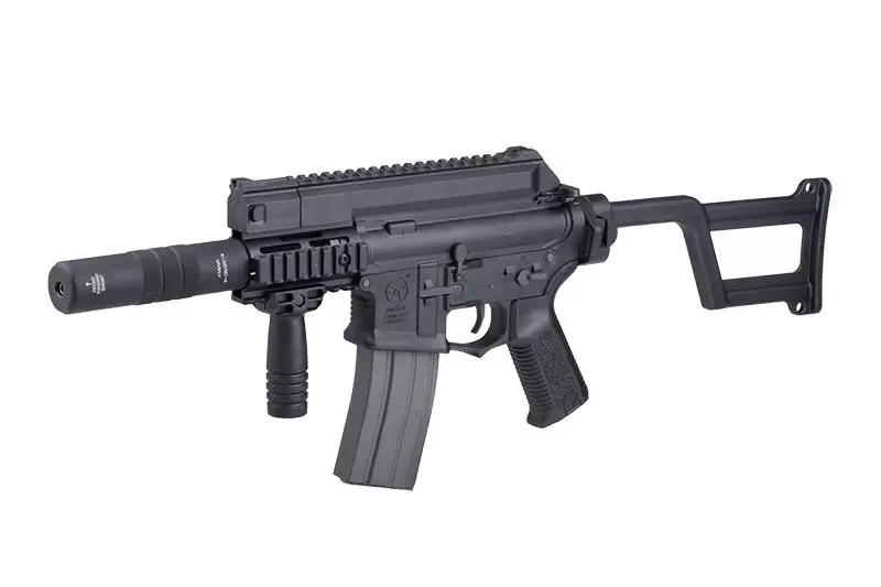 Replika została wyposażona lekką kolbę z tworzywa, składaną na bok. Akumulator mieści się w górnej części korpusu. Dostęp do regulacji systemu hop-up uzyskuje się standardowo dla tego typu konstrukcji - odciągając rączkę przeładowania i odsłaniając okno wyrzutnika łusek.