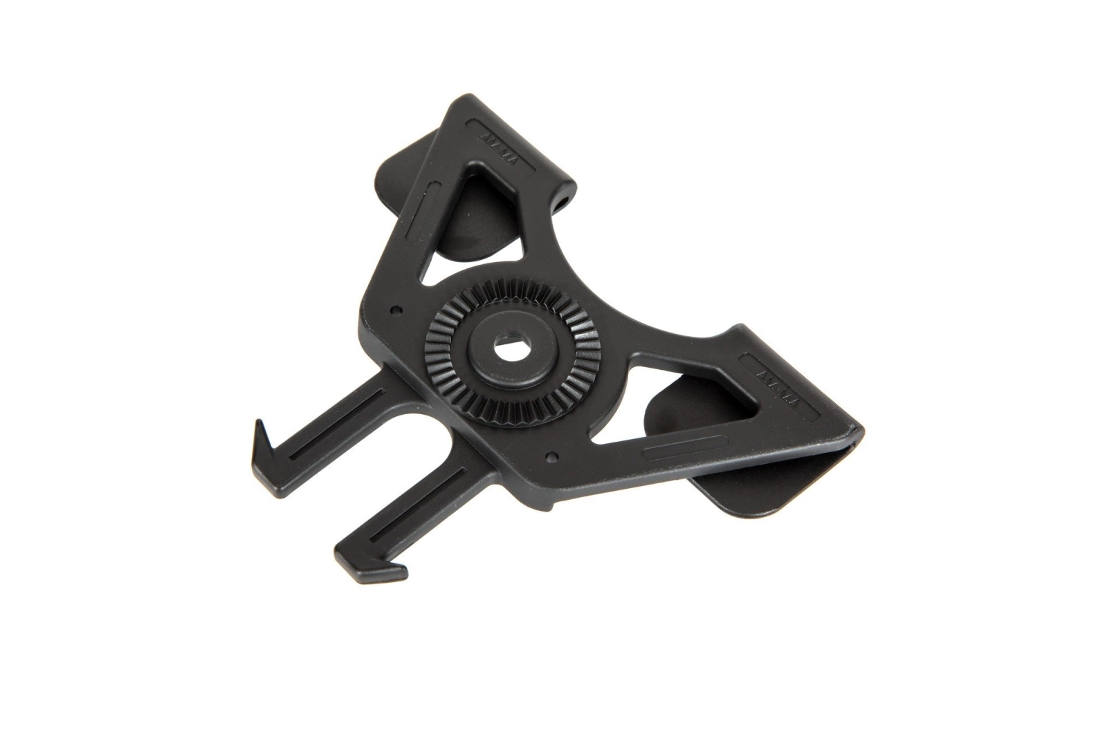 Wykonany z polimerowego tworzywa adapter, pozwalający zamontować kabury i ładownice marki Amomax na oporządzeniu z systemem modułowym MOLLE / PALS.