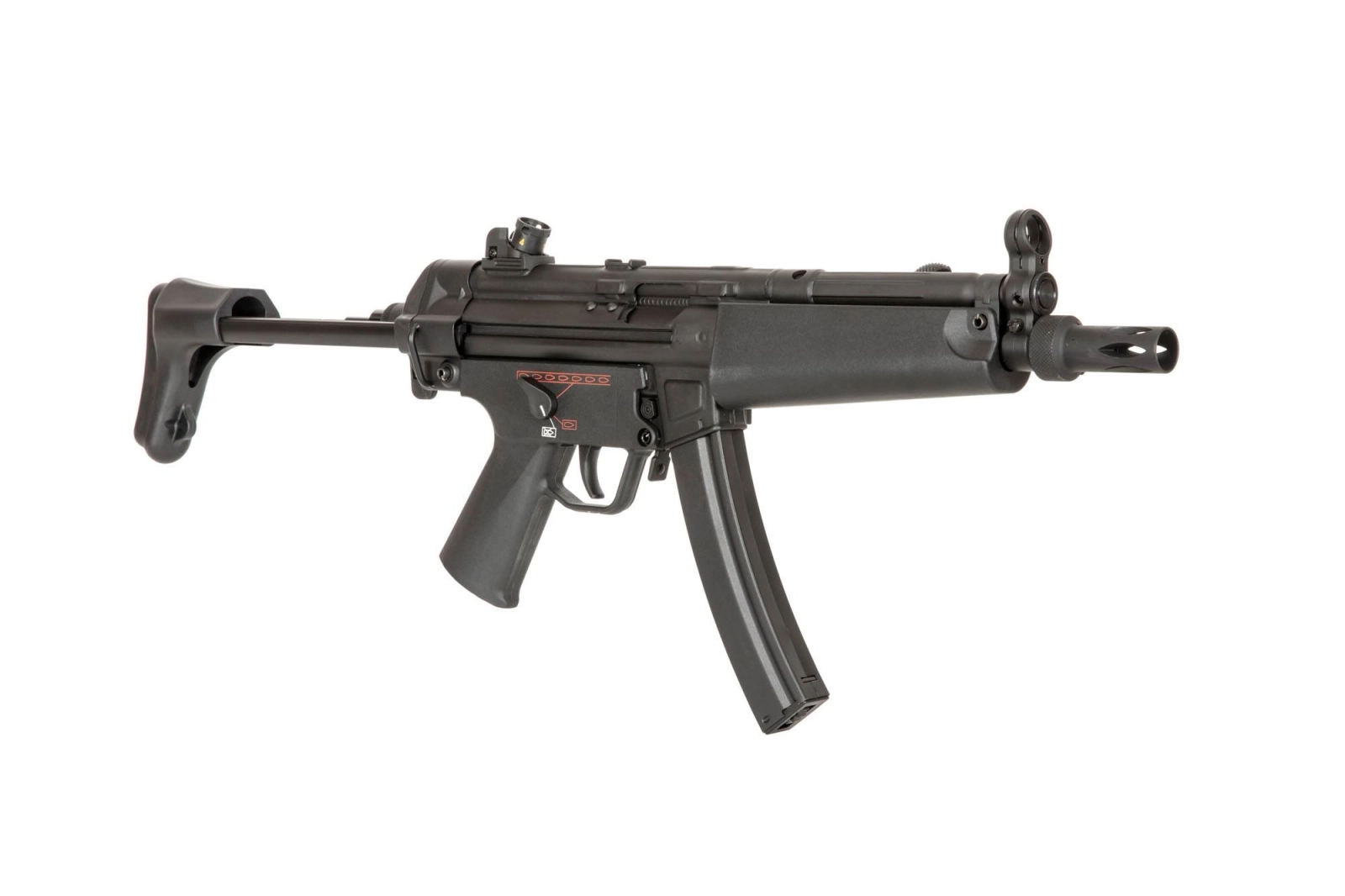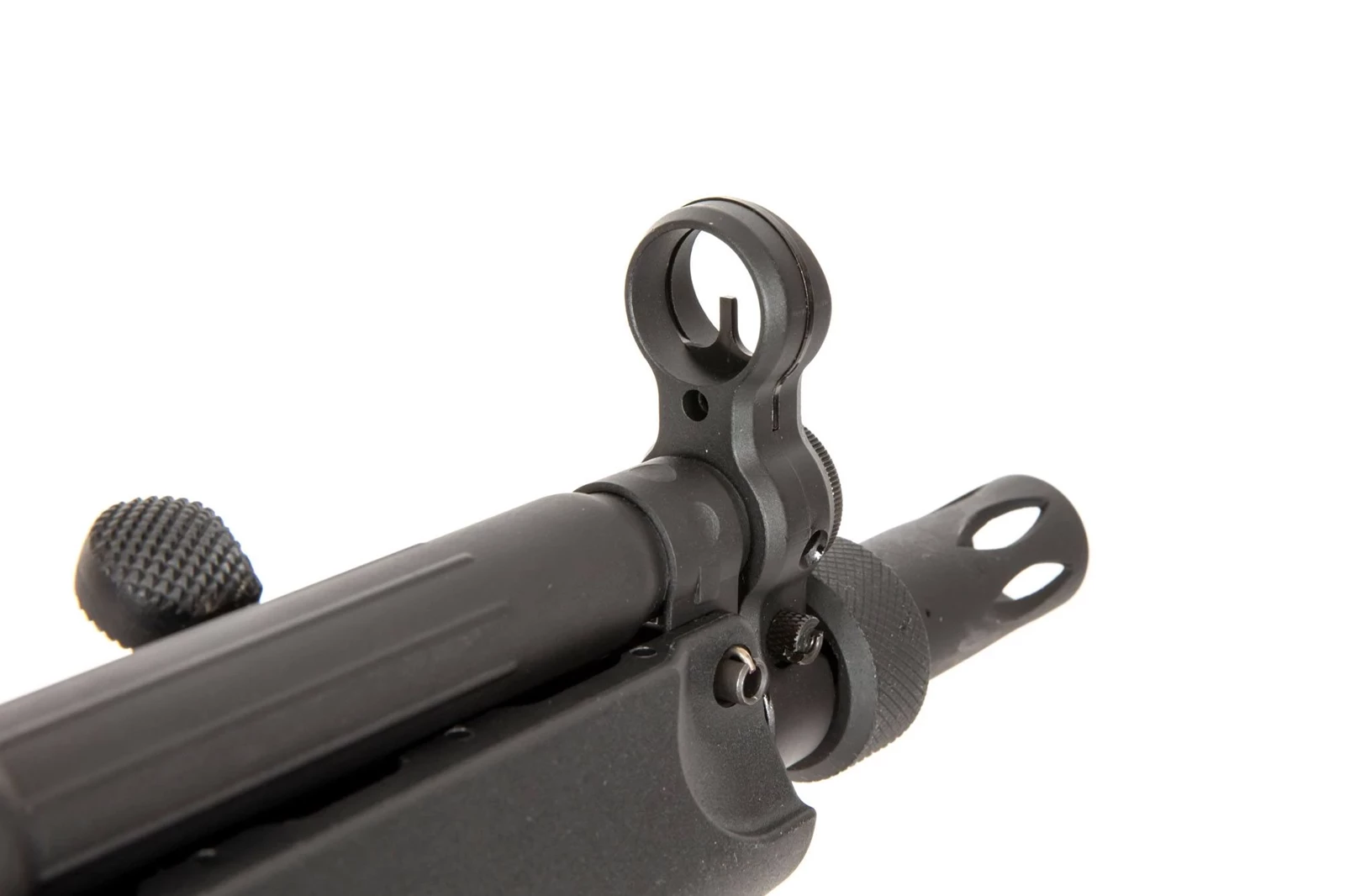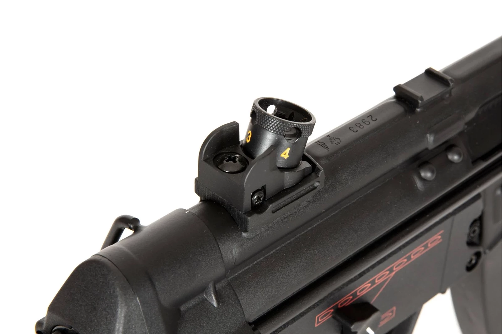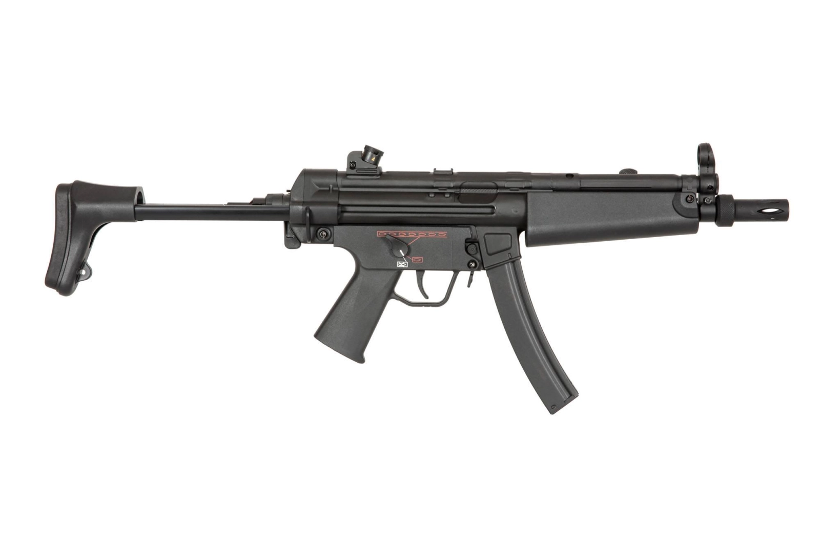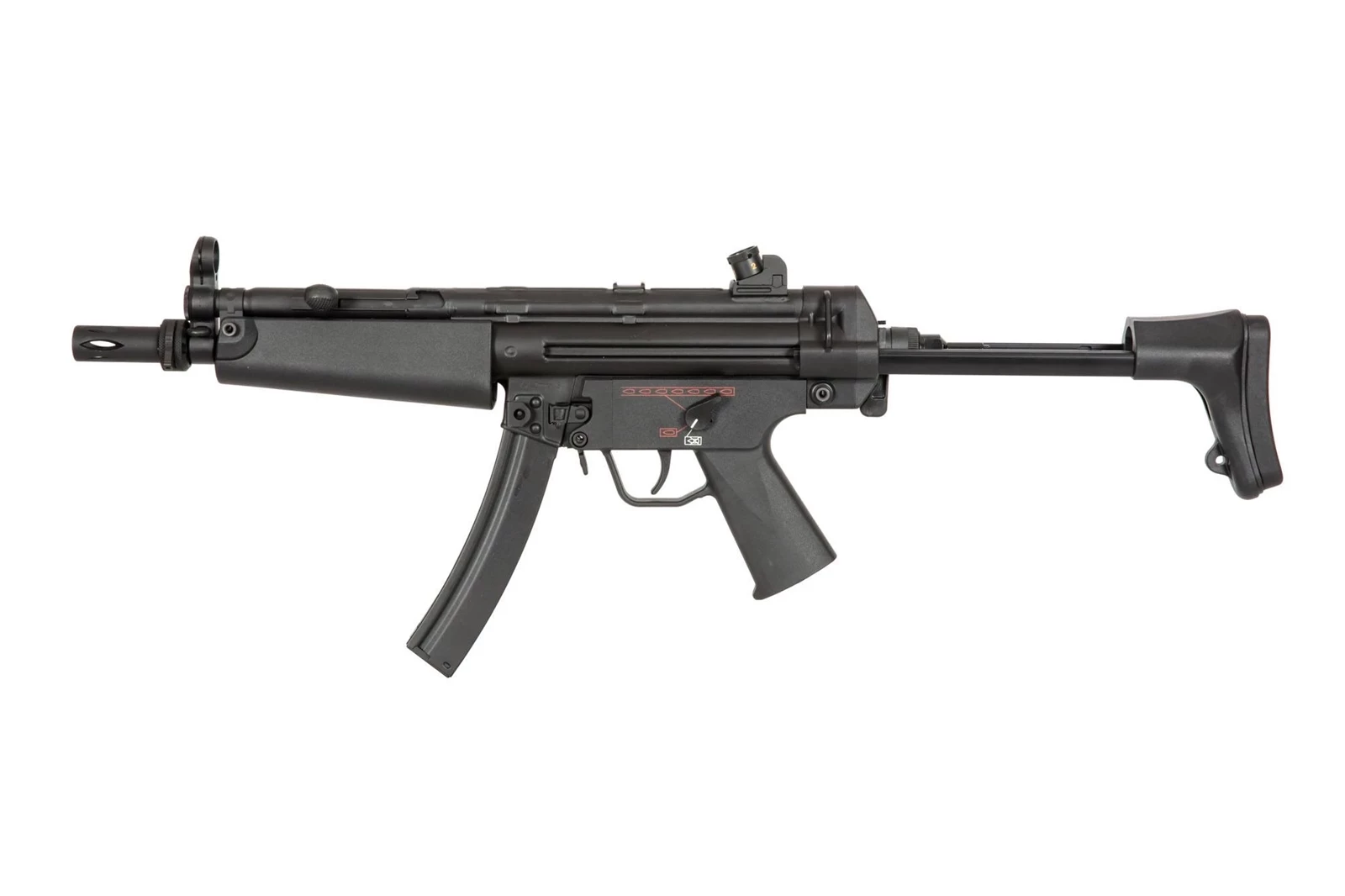 SR5-SD6 to znakomita replika pistoletu maszynowego AEG, w której upper receiver wykonano z blachy stalowej, co wyróżnia tę serię spośród innych dostępnych na rynku. Stalowy jest tu również magazynek oraz detale takie jak mocowania pasa nośnego. Pozostałe elementy metalowe takie jak lufa zewnętrzna, prowadnica kolby czy tłumik wykonano ze stopu aluminium. Podobnie jak w palnym oryginale ze wzmocnionego tworzywa nylonowego wykonano łoże, lower receiver wraz z chwytem pistoletowym i stopkę kolby.