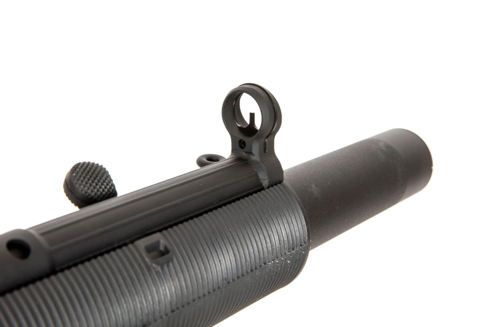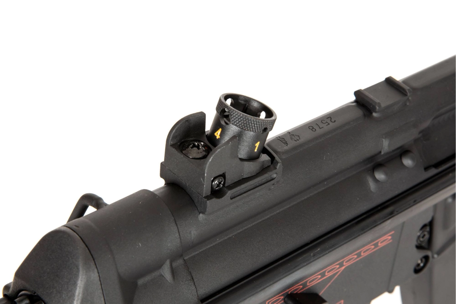 SR5-SD6 to znakomita replika pistoletu maszynowego AEG, w której upper receiver wykonano z blachy stalowej, co wyróżnia tę serię spośród innych dostępnych na rynku. Stalowy jest tu również magazynek oraz detale takie jak mocowania pasa nośnego. Pozostałe elementy metalowe takie jak lufa zewnętrzna, prowadnica kolby czy tłumik wykonano ze stopu aluminium. Podobnie jak w palnym oryginale ze wzmocnionego tworzywa nylonowego wykonano osłonę tłumika, lower receiver wraz z chwytem pistoletowym i stopkę kolby.