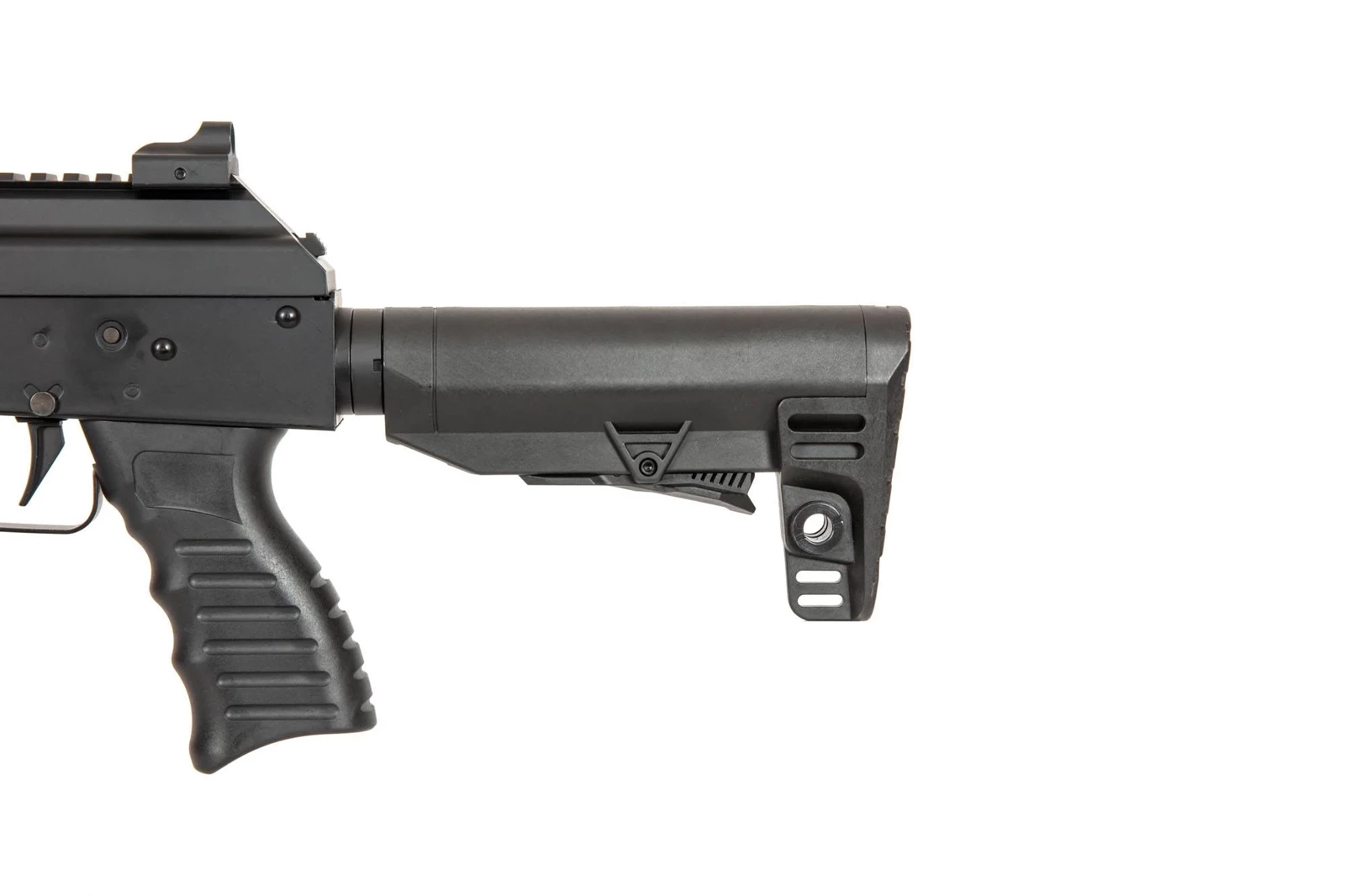 Pokrywę komory zamkowej osadzono na zawiasie, pod nią znajduje się miejsce na akumulator typu stick. Karabin napędza standardowy, bardzo wytrzymały gearbox V3 charakteryzujący się dobrą kulturą pracy oraz gotowością do dalszych tuningów.