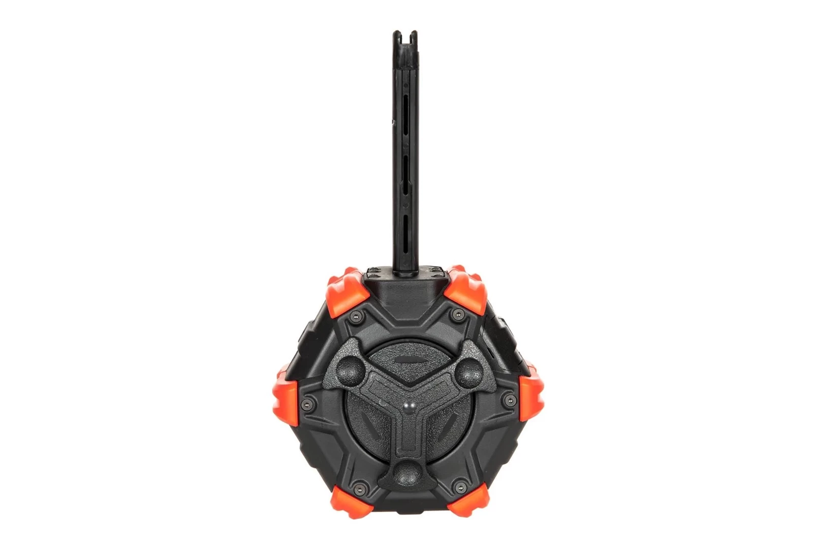 Wykonany z wytrzymałego tworzywa sztucznego oraz metalu magazynek bębnowy o pojemności 350 kulek. Magazynek gazowy pasuje do replik gazowych (Green-Gas) typu 1911. Wsyp kulek znajduje się z boku magazynka, z przodu zaś znajduje się mechanizm podkręcający kulki. Na dole magazynka znajduje się wlew gazu do dużego zbiornika.