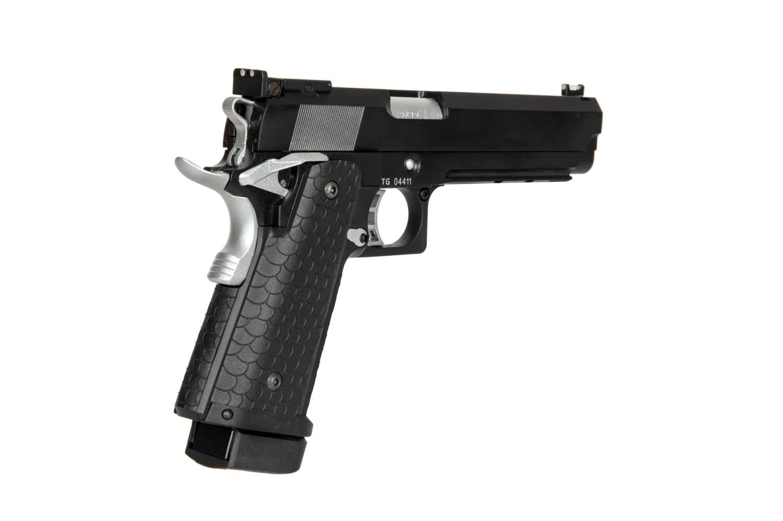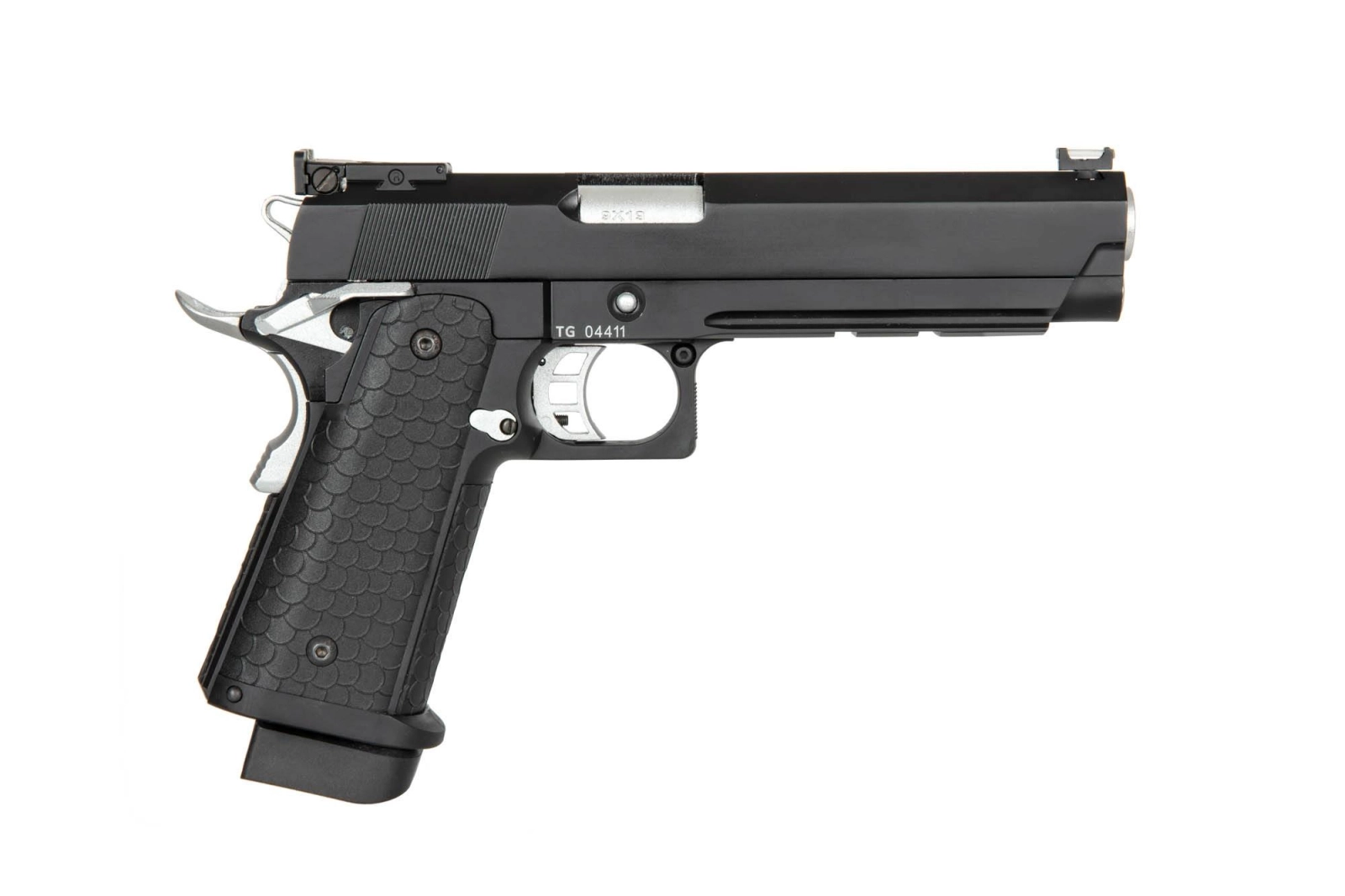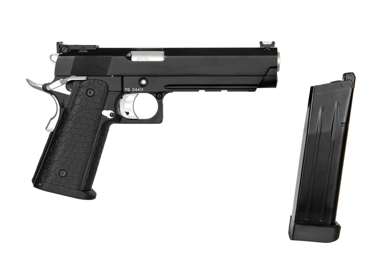 Do repliki dołączono metalowy magazynek Greengas mieszczący 25 kulek. Pistolet zapakowano w solidną, sztywną walizkę transportową z tworzywa sztucznego.