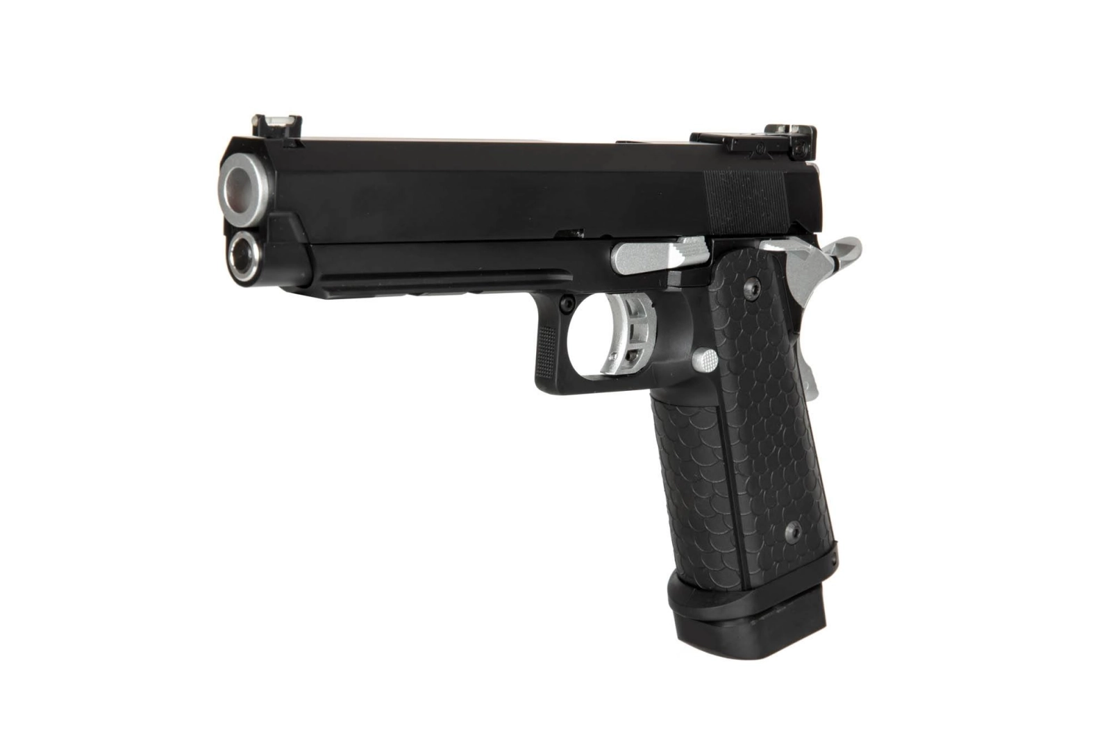 Pistolet posiada obustronny, podwójny bezpiecznik uniemożliwiający przypadkowe oddanie strzału. Dzięki zastosowaniu realistycznego systemu blow-back zamek repliki cofa się przy każdym strzale, podobnie jak podczas prowadzenia ognia z palnego pistoletu. Po opróżnieniu magazynka zamek pozostaje w tylnej pozycji.