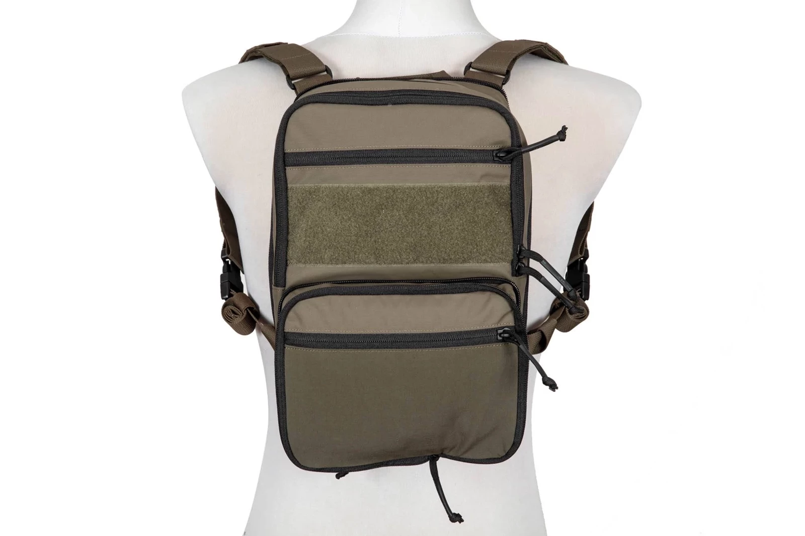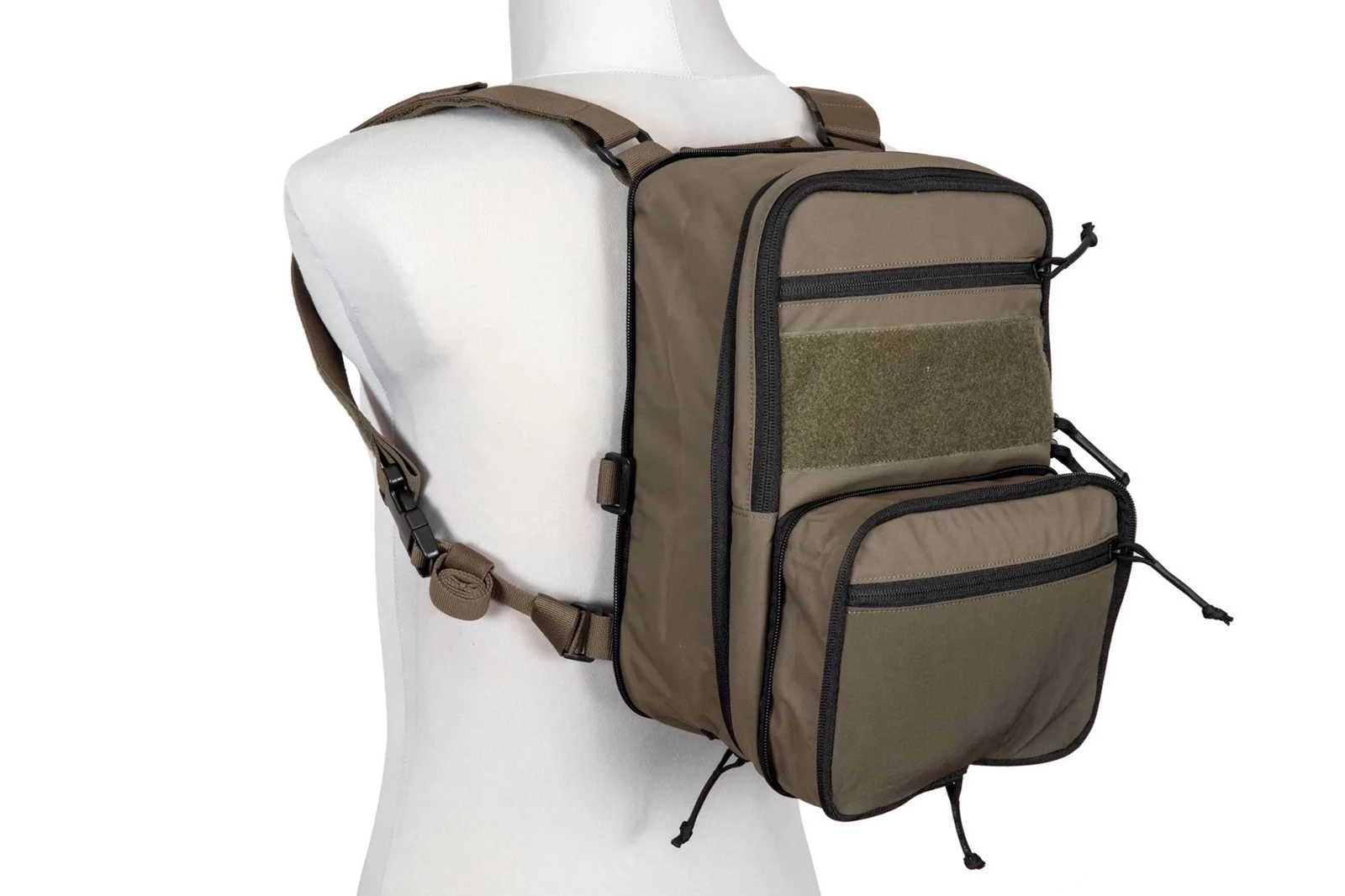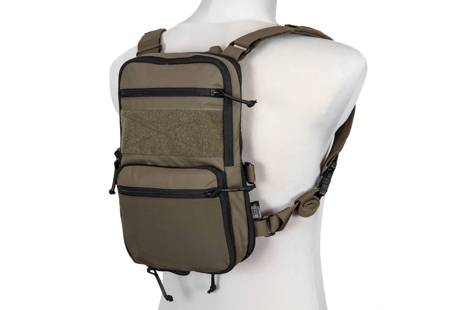 Oprócz standardowych regulowanych szelek plecak ma również możliwość bezpośredniego przypięcia do kamizelki dzięki systemowi MOLLE.