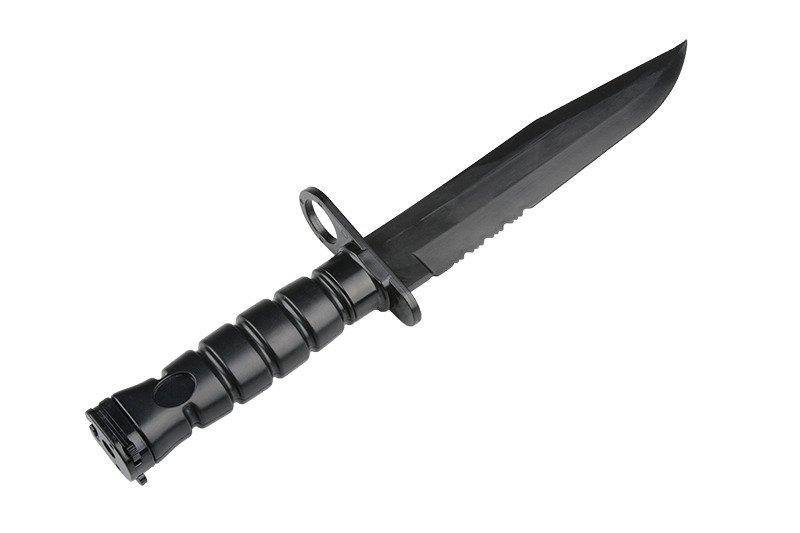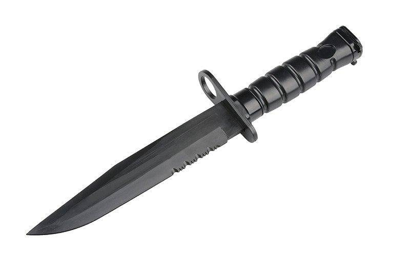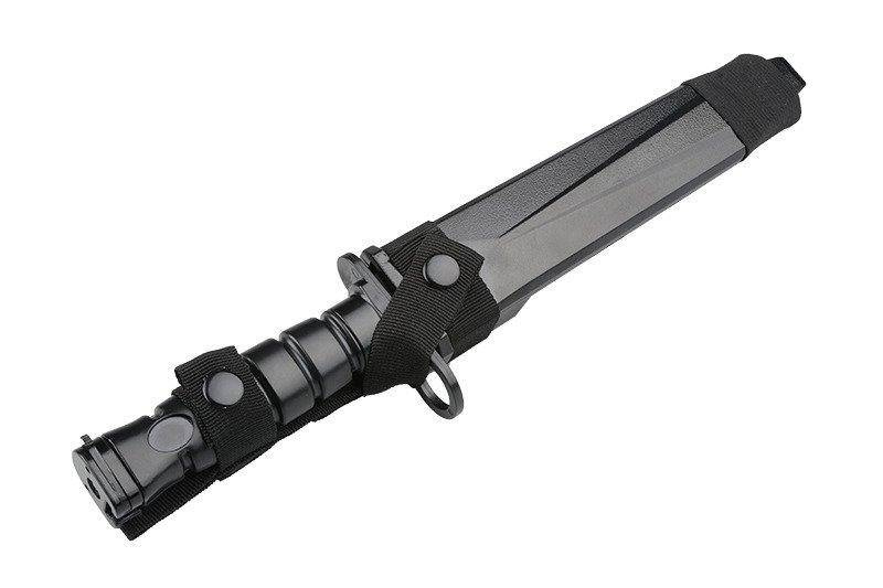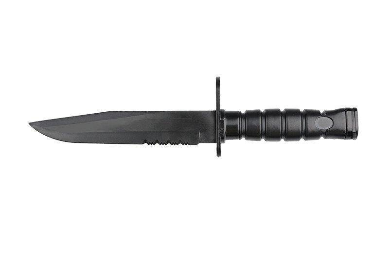 Głownia noża została wykonana z wytrzymałego, ale giętkiego tworzywa sztucznego. Rękojeść posiada żebrowaną fakturę, co zapewnia pewny chwyt. Podstawa rękojeści posiada montaż do replik typu M4/M16. Atrapa idealna do treningów, symulacji, etc.