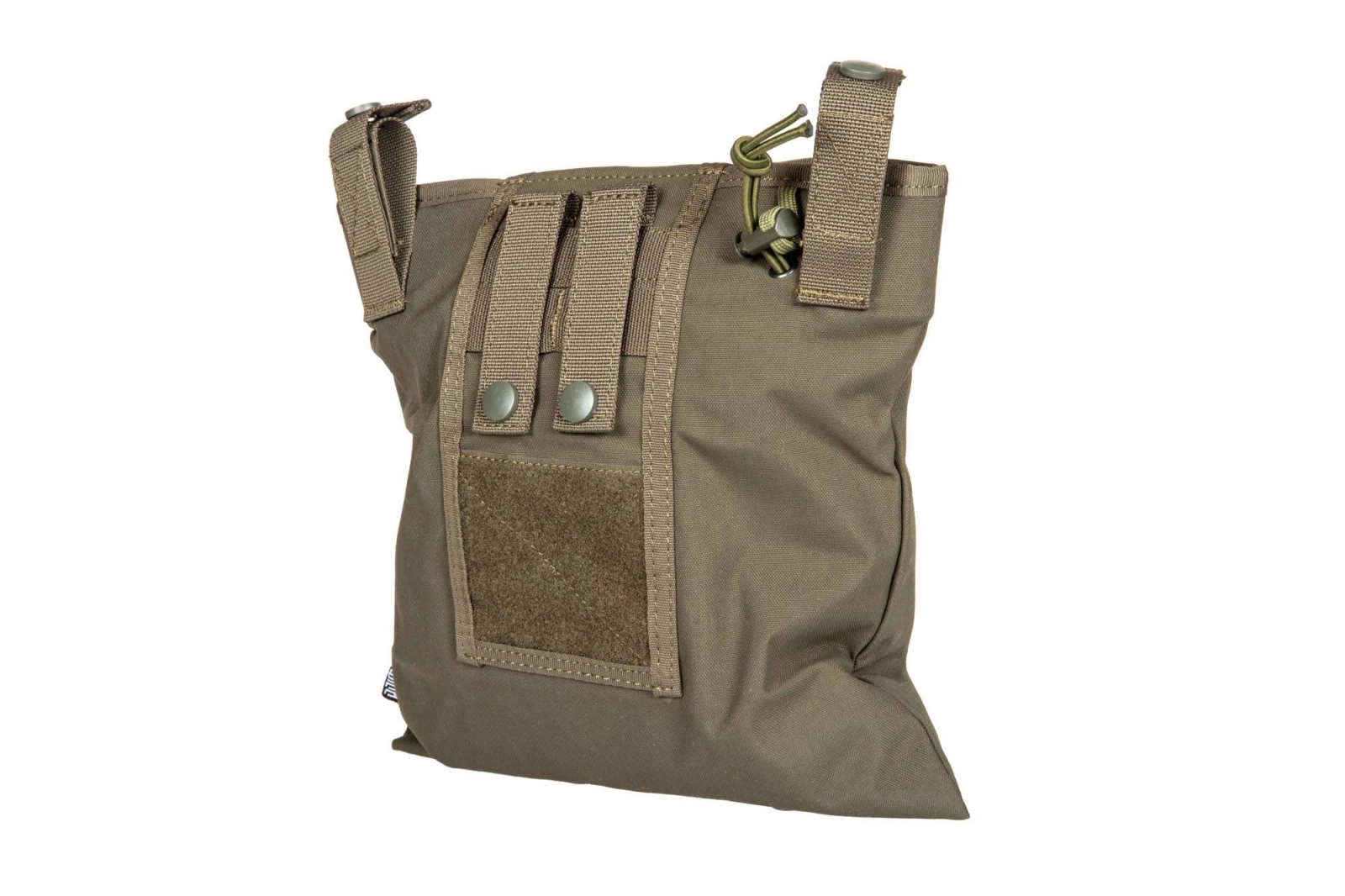 Wykonana z lekkiego i trwałego materiału Aspen 500D składana torba zrzutowa na puste magazynki lub inne, przydatne przedmioty. Zastosowanie wytrzymałych szwów oraz wysokiej jakości akcesoriów jak taśmy czy rzepy dodatkowo zwiększają odporność i trwałość. Torbę przymocować możemy do pasa lub oporządzenia w systemie MOLLE. W dolnej części torby znajdują się otwory odprowadzające wodę. Torbę, gdy nie jest potrzeba, można złożyć - służy ku temu klapa wyposażona w rzep.