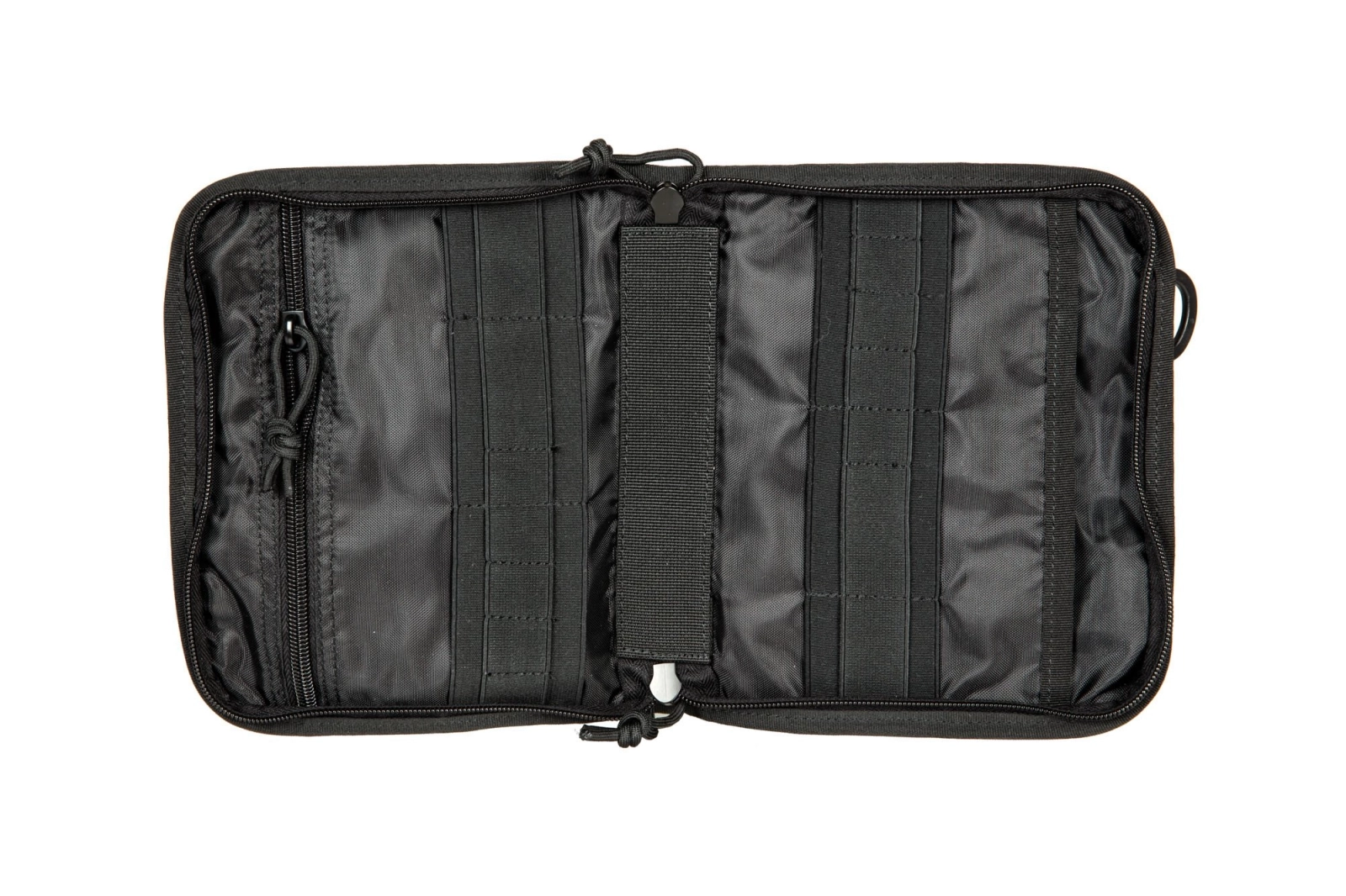 W środku znajdziemy rzędy taśm elastycznych do przenoszenia wyposażenia na obu ściankach oraz dwie płaskie kieszenie w tym jedną zamykaną na zamek błyskawiczny.