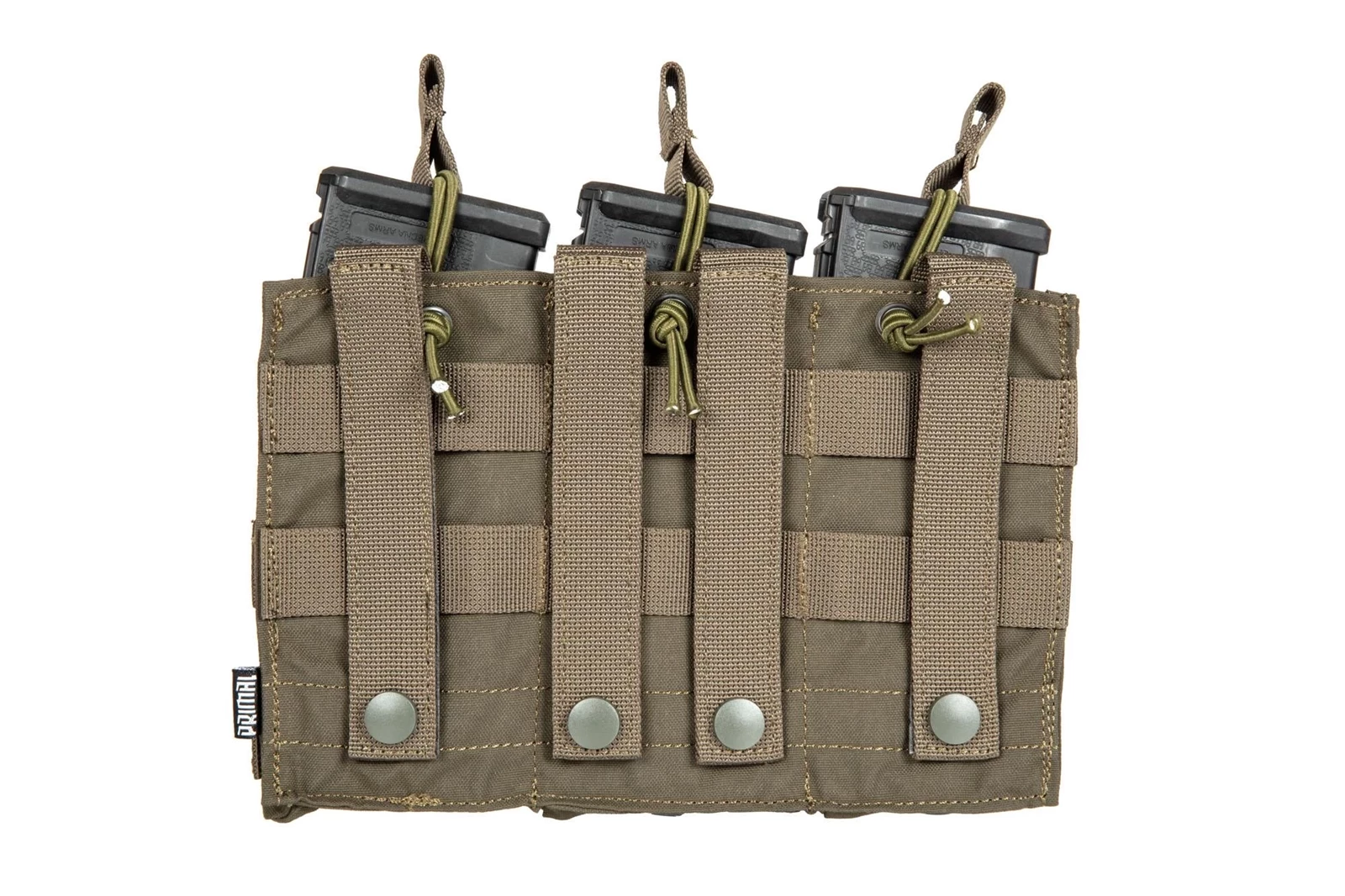 Potrójna ładownica typu shingle na 3 magazynki typu AK / M4 / G36 została wykonana z lekkiej i trwałej Aspen 500D. Zastosowanie wytrzymałych szwów oraz wysokiej jakości akcesoriów jak taśmy i rzepy dodatkowo zwiększają odporność i trwałość. Każdy magazynek jest od góry zabezpieczony przed wypadnięciem elastyczną linką typu shock-cord.