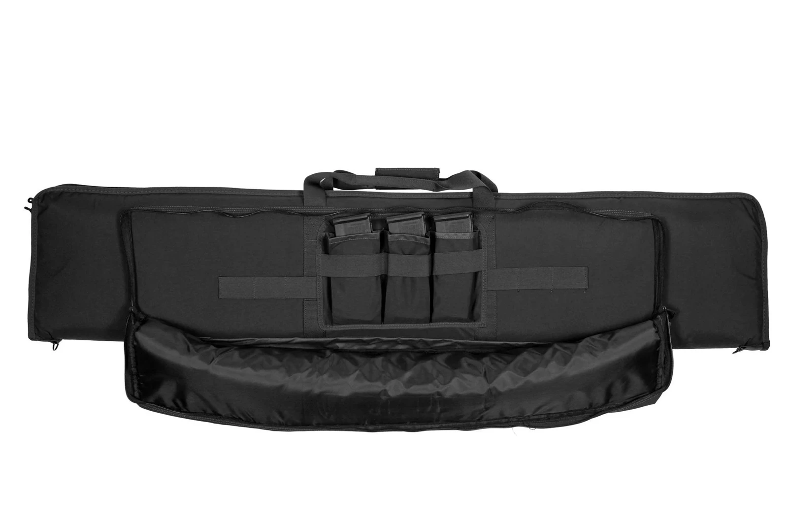Wewnątrz głównej komory znajdują się sześć pasów stabilizujących. Mniejsza komora o wymiarach 900x220mm posiada trzy ładownice mieszczące po dwa magazynki każda oraz elastyczne pasy utrzymujące dodatkowe akcesoria na miejscu. Z zewnątrz została obszyta taśmami MOLLE pozwalającym na rozbudowanie pokrowca o dodatkowe kieszenie. Całość jest chroniona przy pomocy miękkiej gąbki.