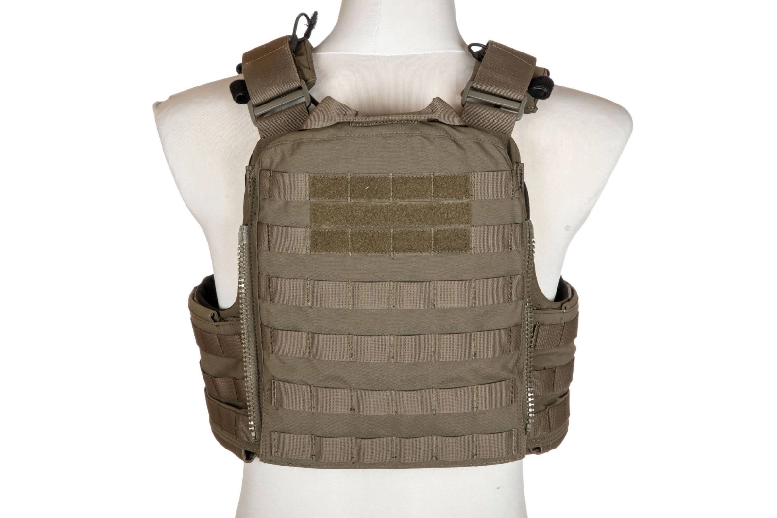 Kamizelka Modon oferuje znakomity komfort przenoszonego oporządzenia dla niskoprofilowych kamizelek. W przedni i tylnym panelu znajdziemy miejsce dla atrap płyty typu SAPI w rozmiarze M. Są one w całości pokryte taśmami zgodnymi z systemem Molle/PALS. W klapie przedniego panelu znajdziemy miejsce na 3 magazynki AR/AK, zabezpieczone dodatkowo linka typu shockcord. Natomiast z tyłu znajdziemy suwaki dla paneli szturmowych czy plecaków. Również na obu panelach możemy znaleźć rzep do przymocowania naszywek czy innych akcesoriów.