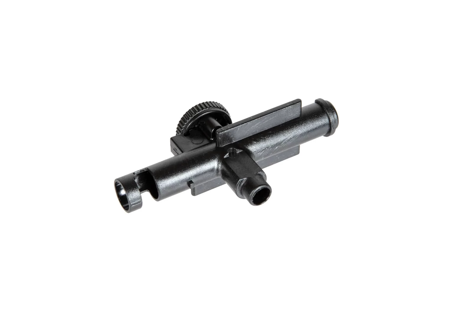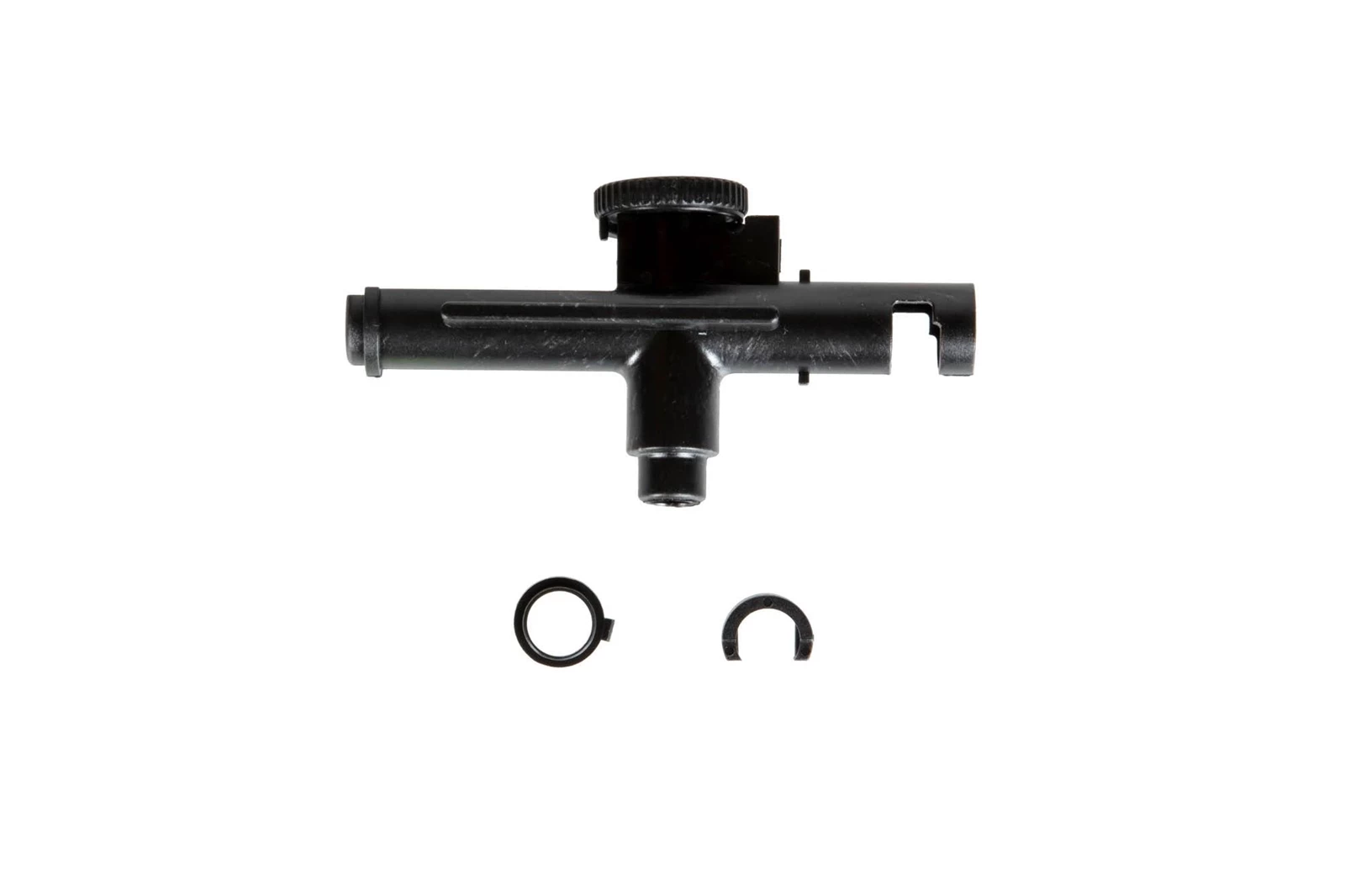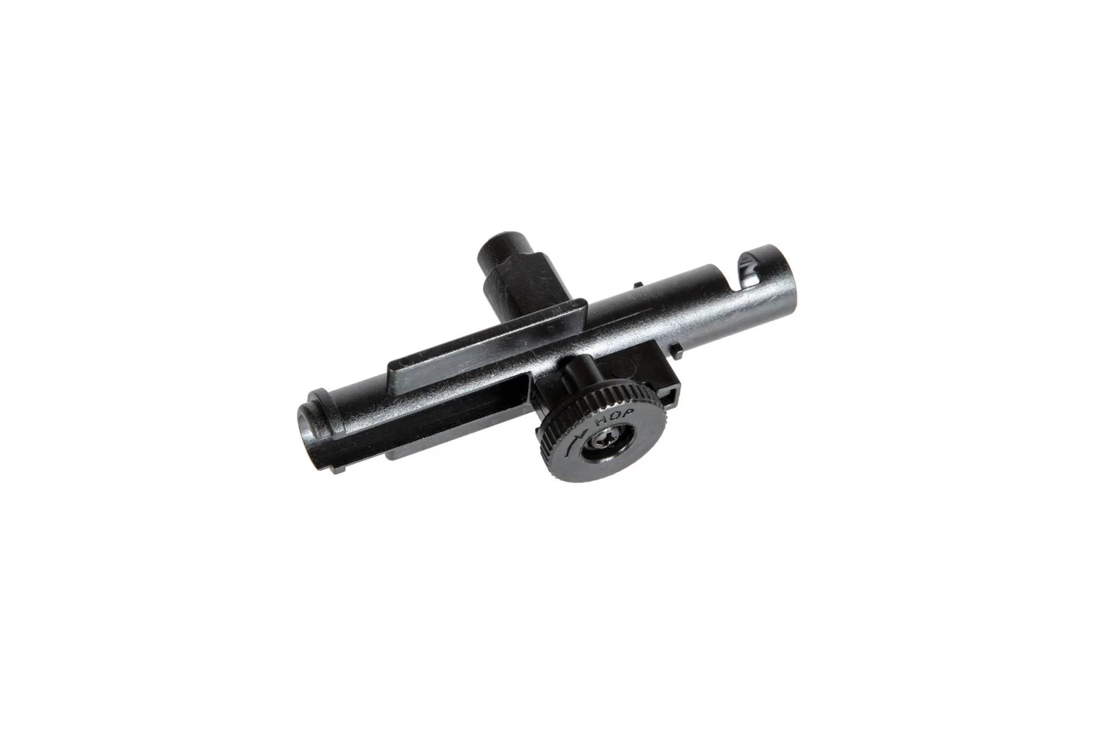 Zestaw hop-up do replik karabinka szturmowego vz.58 produkcji ARES, składający się z polimerowej, rotacyjnej komory HU oraz gumki.