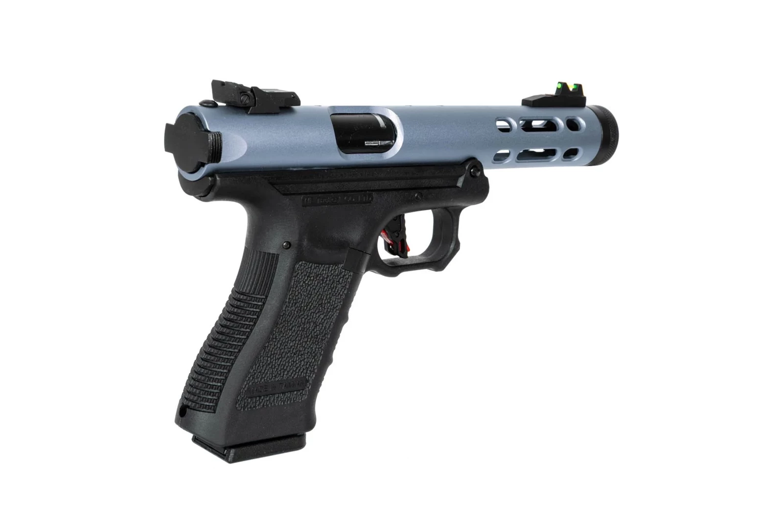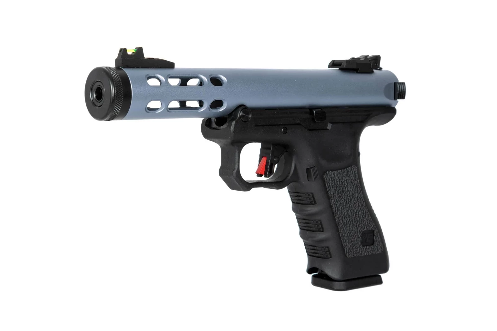Stała lufa wewnętrzna została umieszczona w korpusie będącym jednoczenie lufą zewnętrzną wyposażoną w gwint 14mm CCW ale i korpusem trzymającym wewnętrzne suwadło. Dzięki temu replika osiąga bardzo dobre skupienie i zasięg. Producent zastosował tutaj światłowodowe przyrządy celownicze, a także dostarcza dodatkowe szyny ris do zamontowania peryferiów takich jak optyka czy oświetlenie.