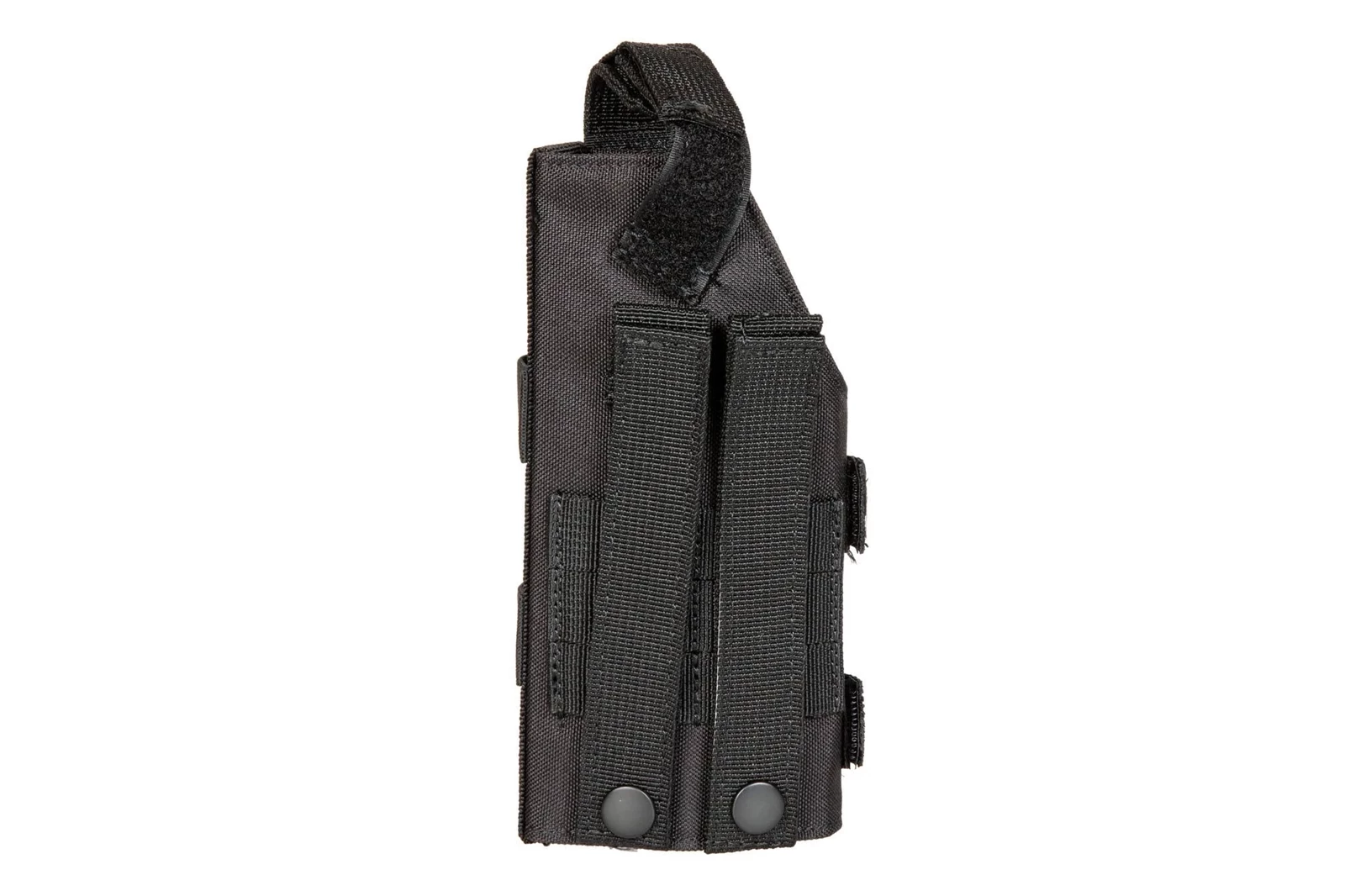 Kabura wykonana jest z wytrzymałego nylonu. Montowana jest za pomocą Pals-ów Molle. Jej wysokość wynosi 195 mm z możliwością regulacji. Szerokość kabury jest również w pełni regulowana. Dzięki temu zmieści się do niej zarówno kompaktowy jak i duży pistolet oraz niestandardowe modele.