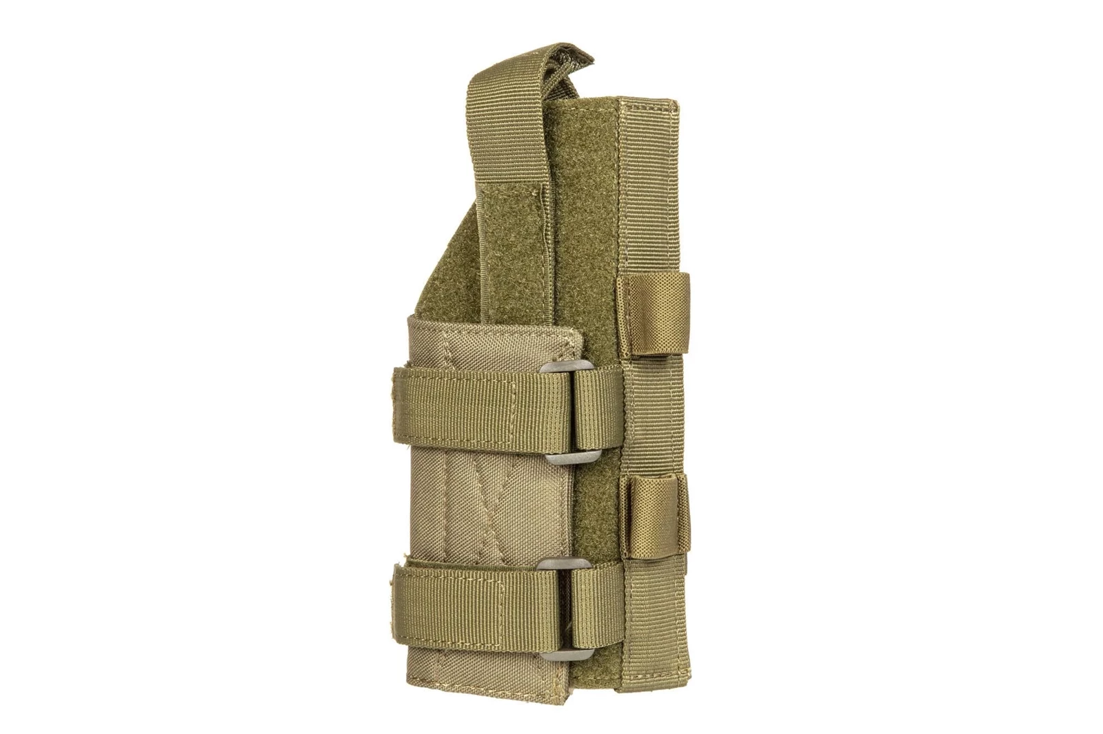 Kabura wykonana jest z wytrzymałego nylonu. Montowana jest za pomocą Pals-ów Molle. Jej wysokość wynosi 195 mm z możliwością regulacji. Szerokość kabury jest również w pełni regulowana. Dzięki temu zmieści się do niej zarówno kompaktowy jak i duży pistolet oraz niestandardowe modele.