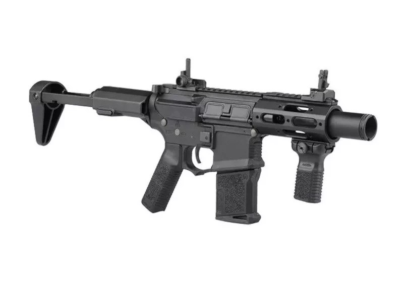 Korpus repliki został wykonany ze wzmacnianego nylonu. Jakość użytych materiałów sprawia, iż na pierwszy rzut oka ciężko rozpoznać, że jest to tworzywo sztuczne a nie metal. Na korpusie zostały umieszczone efektownie wyglądające oznaczenia, m.in. modelu, kalibru, a także logo Amoeba Airsoft. Metalu użyto do produkcji lufy zewnętrznej, wzmacniacza dźwięku (służy do dezorientacji przeciwnika), osłony gwintu oraz drobnych elementów. Chwyt pistoletowy jest odpowiednio profilowany, pokryty chropowatą, antypoślizgową fakturą, która zwiększa pewność chwytu i wygodę. Przycisk zwalniacza magazynka został powiększony, aby ułatwić jego obsługę.