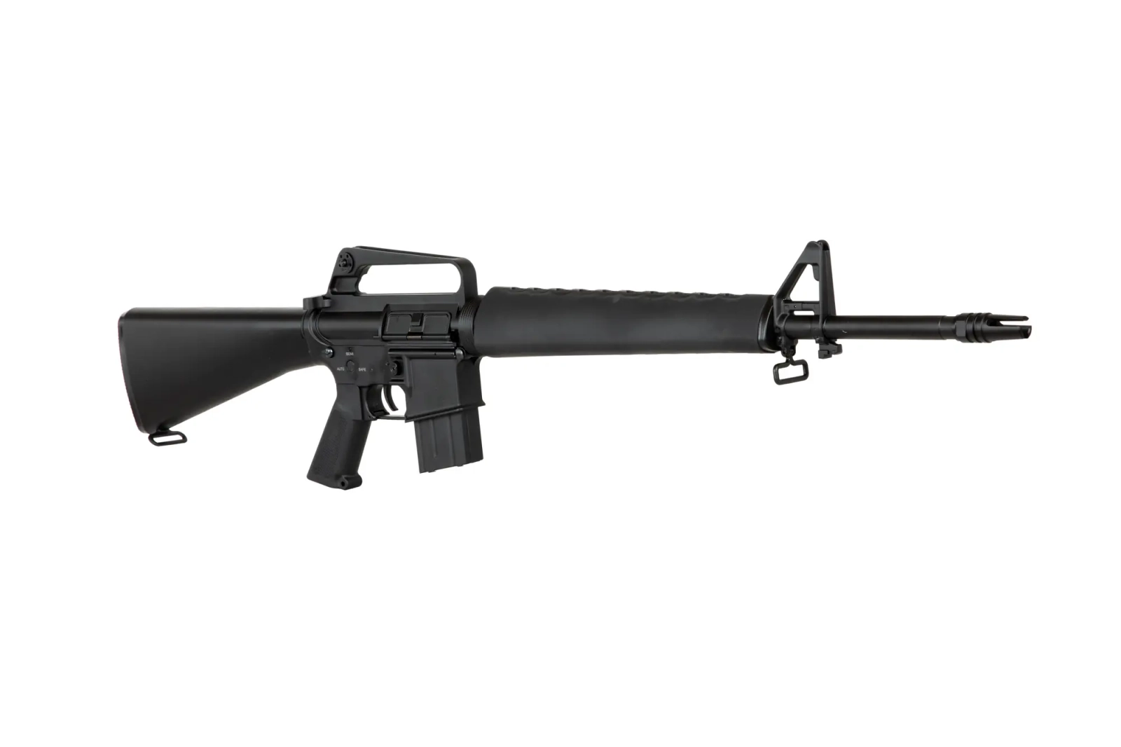Działający bolt-catch ułatwia regulację systemu hop-up. Karabinek ASG Double Bell posiada system szybkiej wymiany sprężyny, dzięki któremu nie musimy rozkręcać szkieletu gearboxa aby dostosować prędkość wylotową do wymagań rozgrywki.