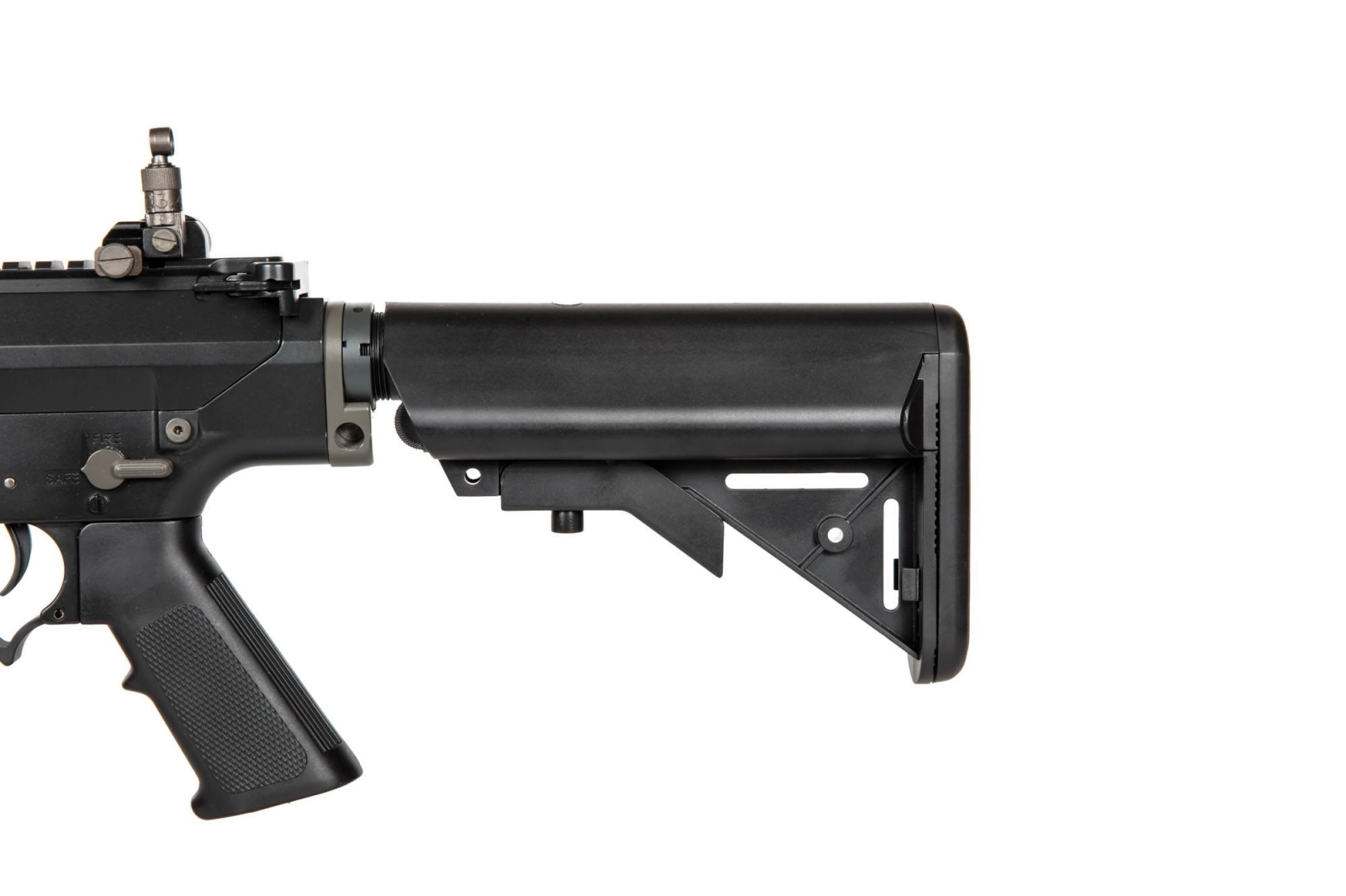 Replika została wykonana w większości z wysokiej jakości stopu aluminium - cały korpus, lufa zewnętrzna, prowadnica kolby, etc. Z mocnego tworzywa wytworzono jedynie kolbę oraz chwyt pistoletowy. Jest to teleskopowa kolba typu LMT, 5-pozycyjna - można wyregulować jej długość, by dostosować replikę do budowy i preferencji strzelca, ponadto mieści w sobie akumulator repliki.