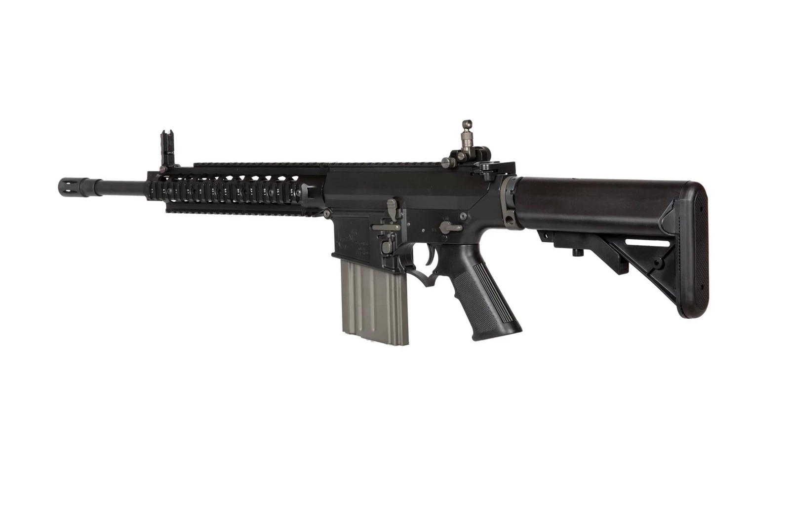 Replika wyprodukowana została przez renomowaną firmę ARES. Dzięki licencji amerykańskiej Knight's Armament Company, producenta palnego pierwowzoru, możemy cieszyć się autentycznym nazewnictwem oraz oznaczeniami na korpusie, łącznie z charakterystycznym graficznym logo KAC z hełmem i tarczą. M110 jest samopowtarzalnym karabinem wyborowym używanym przez żołnierzy US Army oraz USMC, w użyciu od 2007 roku. Wersja Carbine charakteryzuje się nieco niższą wagą oraz krótszą lufą. M110 jest udoskonaloną i unowocześnioną odmianą znanego i popularnego SR25.