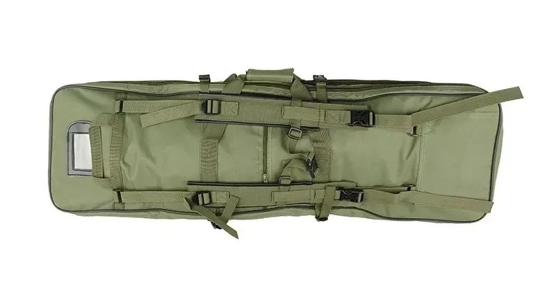 Pokrowiec na broń posiada dwie kieszenie do przenoszenia karabinów, krótsza komora umożliwia przenoszenie broni o długości do 65 cm oraz dłuższa umożliwiająca przenoszenie karabinka do 96 cm wewnątrz a przy wykorzystaniu składanego kaptura 110 cm.