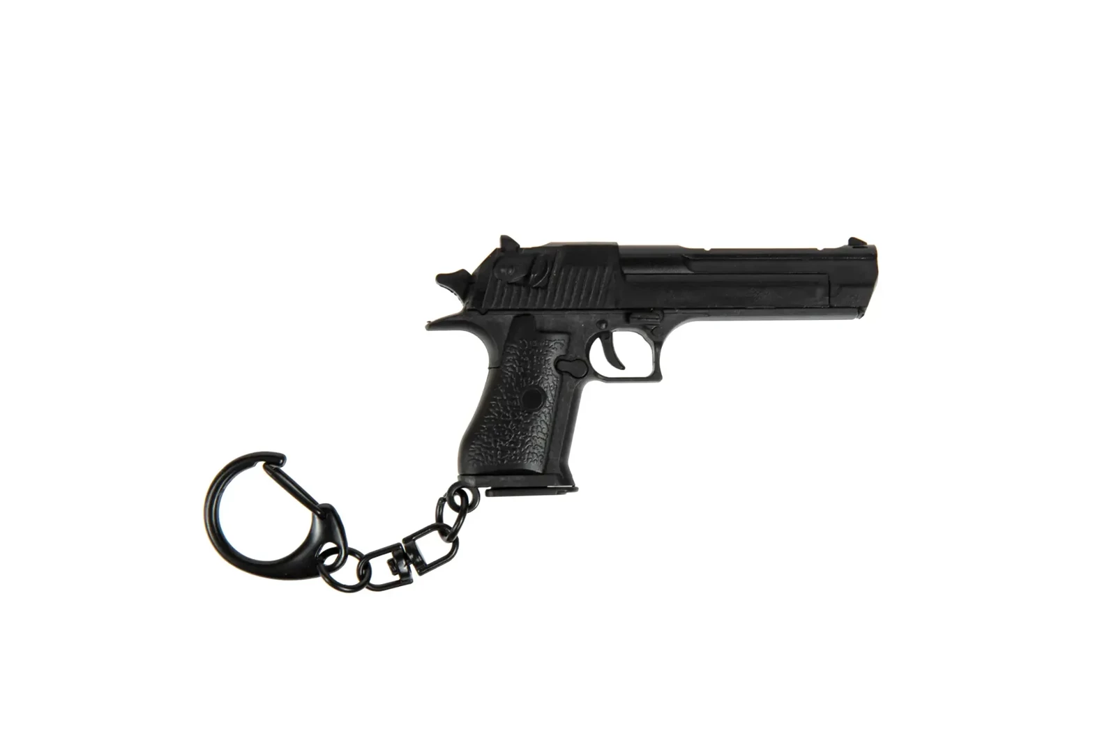 Brelok z zawieszką, który można przypiąć np. do kluczy, w pełni funkcjonalny. Można wyjąć magazynek za pośrednictwem przycisku zwalniania magazynka, przeładować zaciągając zamek oraz strzelić :)