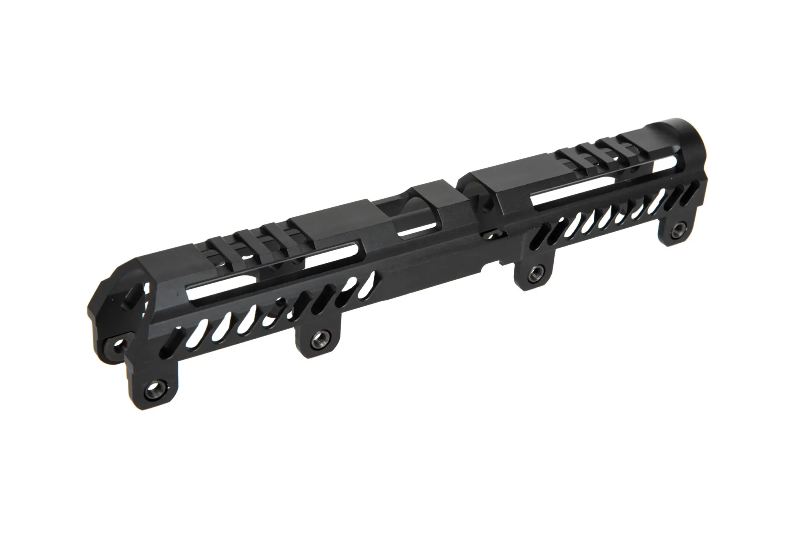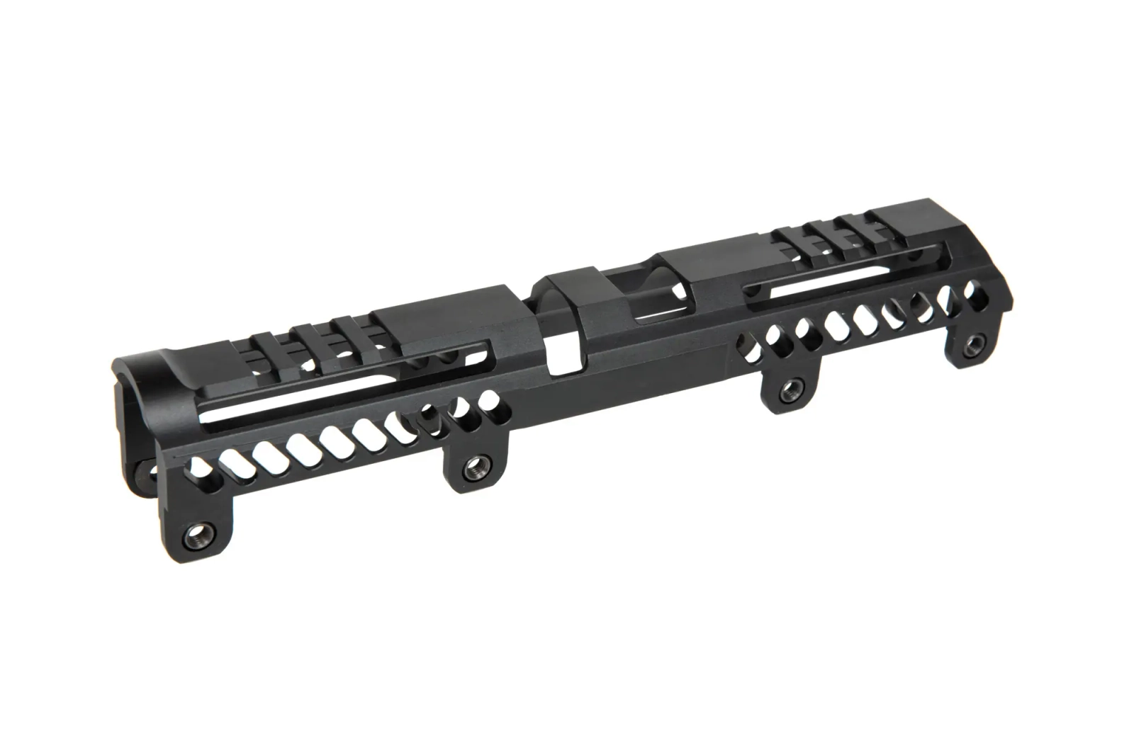 Aluminiowa nakładka rury gazowej zaopatrzona w dwa odcinki 35mm szyn RIS przeznaczona do montażu na łożu B-10L. Element zestawu Sport-4 do pełnowymiarowych AK (AKM, AK-74 itp).