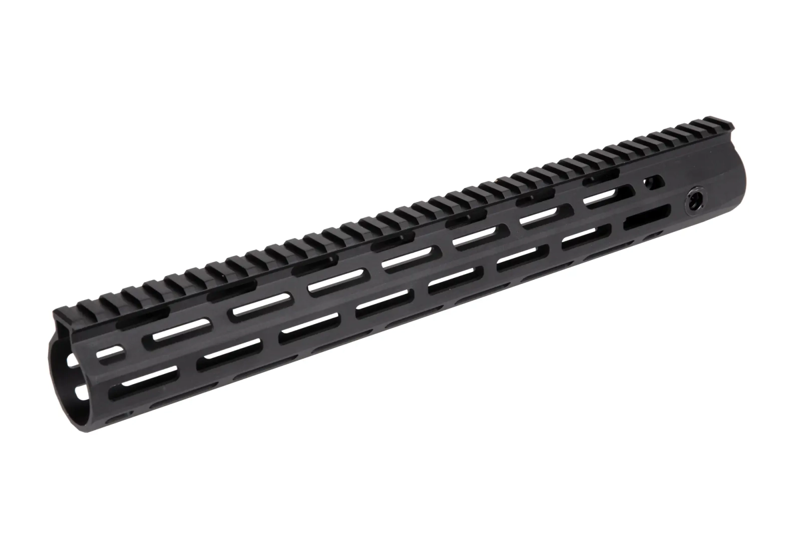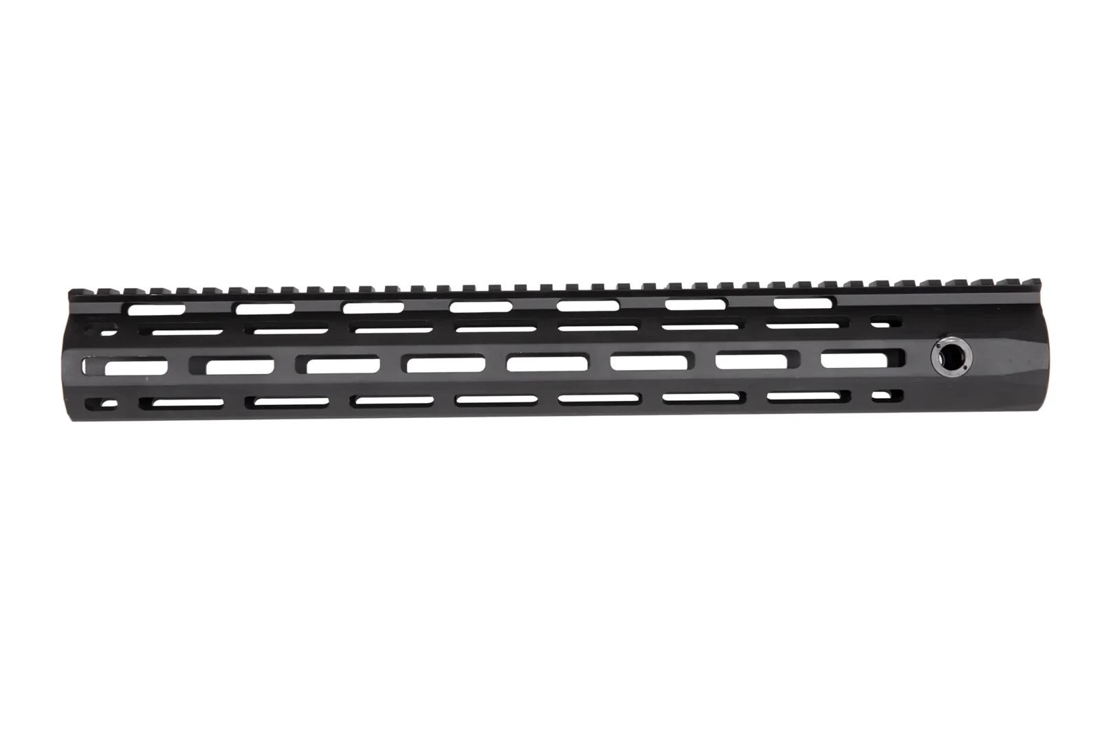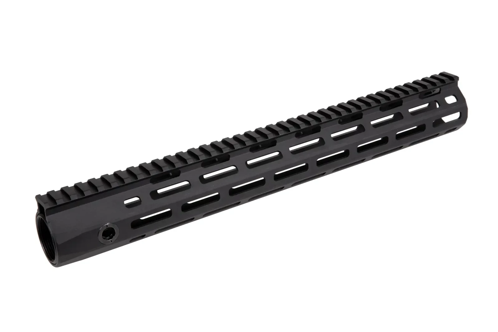 Wykonany z metalu front w standardzie M-Lok z górną szyna w standardzie RIS 22mm, przeznaczona do montażu na replikach typu M4/M16. Szyna ma długość 14,5"/375mm.