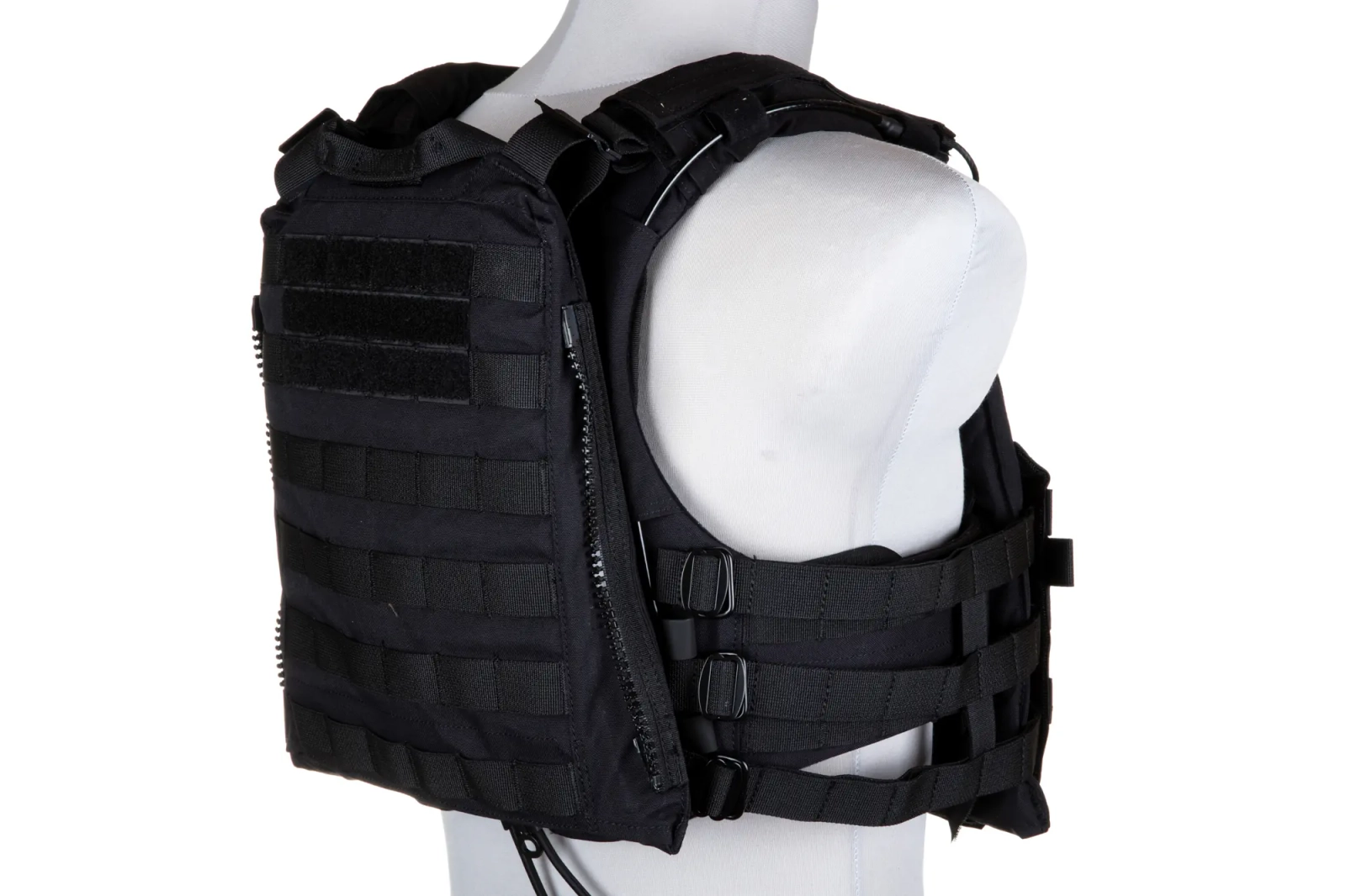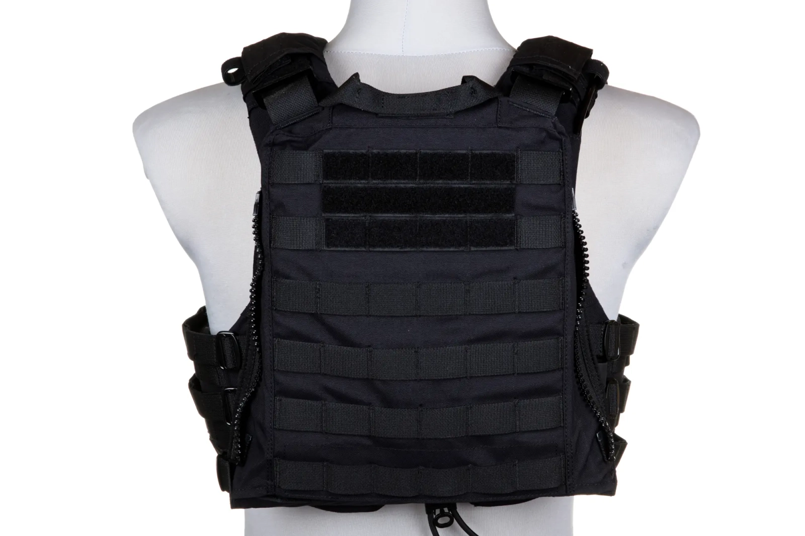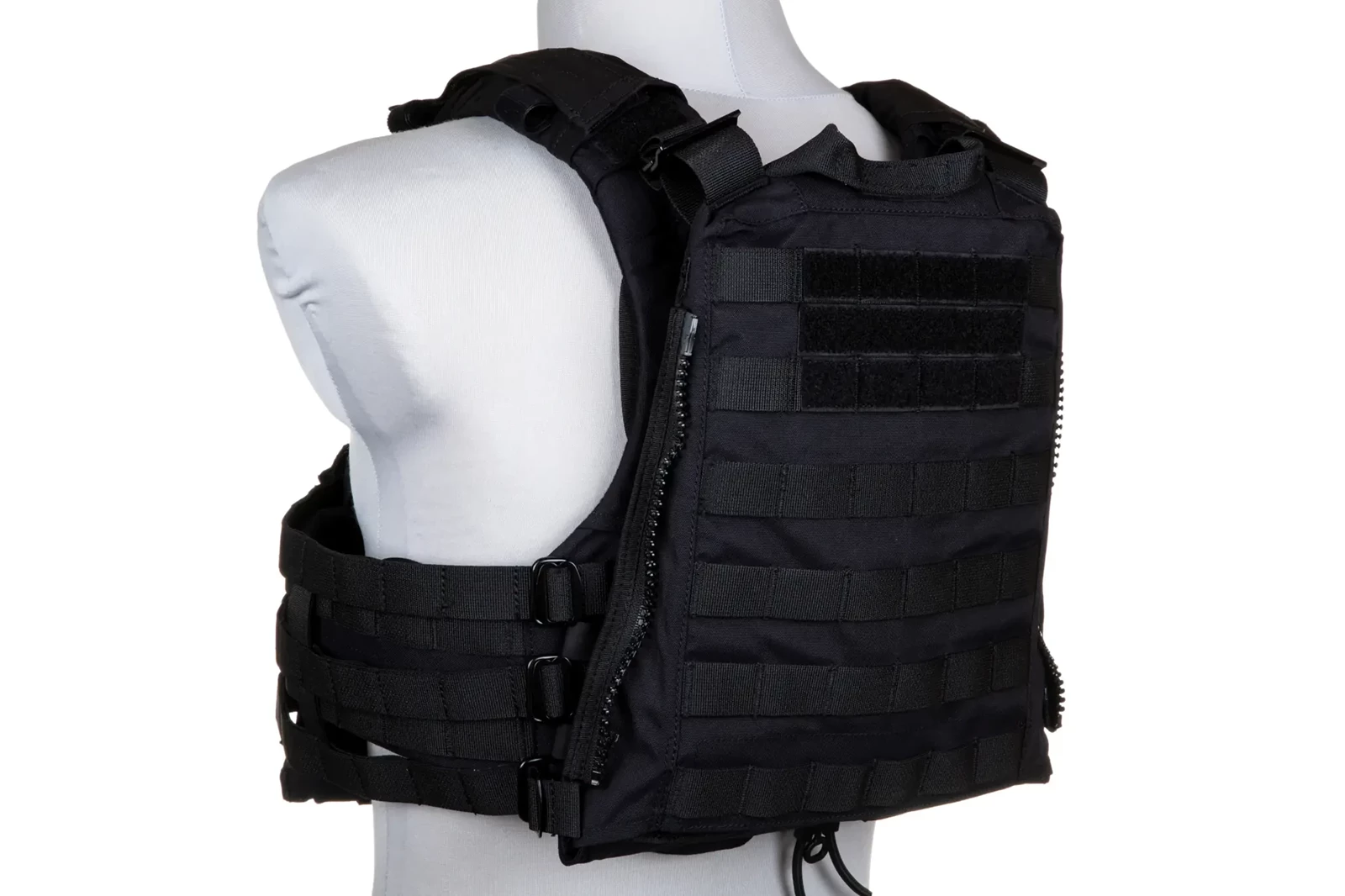 Unikatowa konstrukcja kamizelki zapewnia dużą modułowość, możliwość personalizacji i wygodę. W przednim i tylnym panelu znajdziemy miejsce dla atrap płyty typu SAPI w rozmiarze M. Przednia część została wyposażona w zdejmowany panel z pasami typu Molle/ PALS oraz dwa paski umożliwiające podpięcie do kamizelki chest rig typu DC3R. Ponadto na przedniej części została umieszczona wewnętrzna kieszeń typu admin. Kieszeń wewnętrzna z panelem rzep, z podgumowaną taśmą, pozwalającą na przechowywanie dokumentów, telefonu i innych przedmiotów w uporządkowany sposób. Natomiast z tyłu znajdziemy suwaki dla paneli szturmowych czy plecaków. Również na obu częściach możemy znaleźć rzep do przymocowania naszywek czy innych akcesoriów.