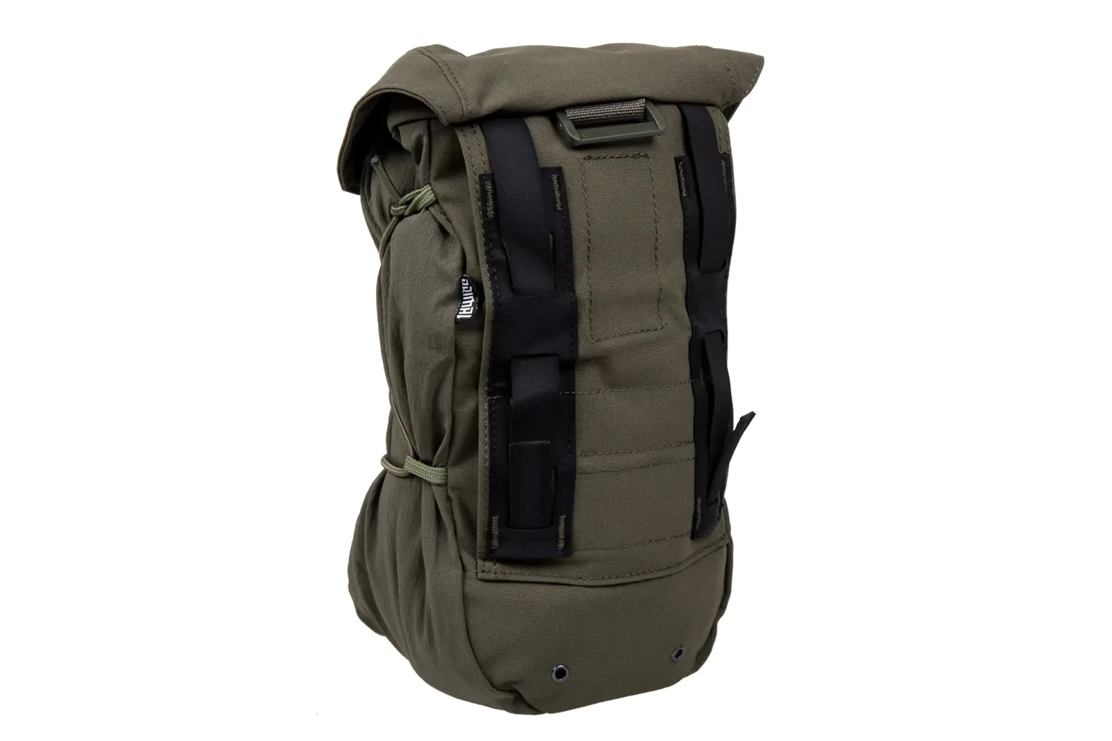 Kieszeń została wyposażona w system montażowy molle, przelotki na pas 80mm i 50mm oraz plastikowy regulator na pas 30mm. Dzięki temu, można ją założyć w praktycznie dowolny sposób na oporządzeniu. Dzięki temu może służyć jako torba udowa (Np. na maskę przeciwgazową), powiększenie plecaka, worek zrzutowy lub pokrowiec na bukłak.