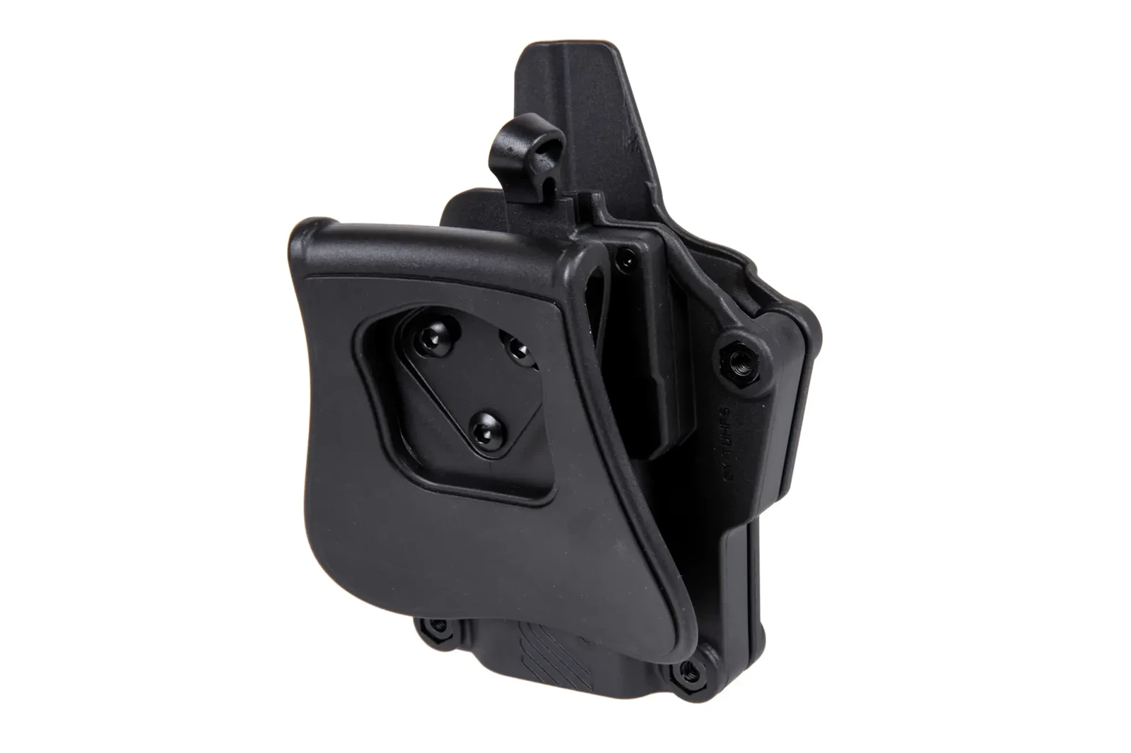 Kabura wyprodukowana przez firmę Cytac przeznaczona do różnych popularnych rodzajów pistoletów: Glock, Beretta, Sig Sauer, Taurus, etc. wersja "Plus Optics" została przystosowana do współpracy z pistoletami wyposażonymi w optykę jak i również mechaniczne podwyższone przyrządy celownicze.