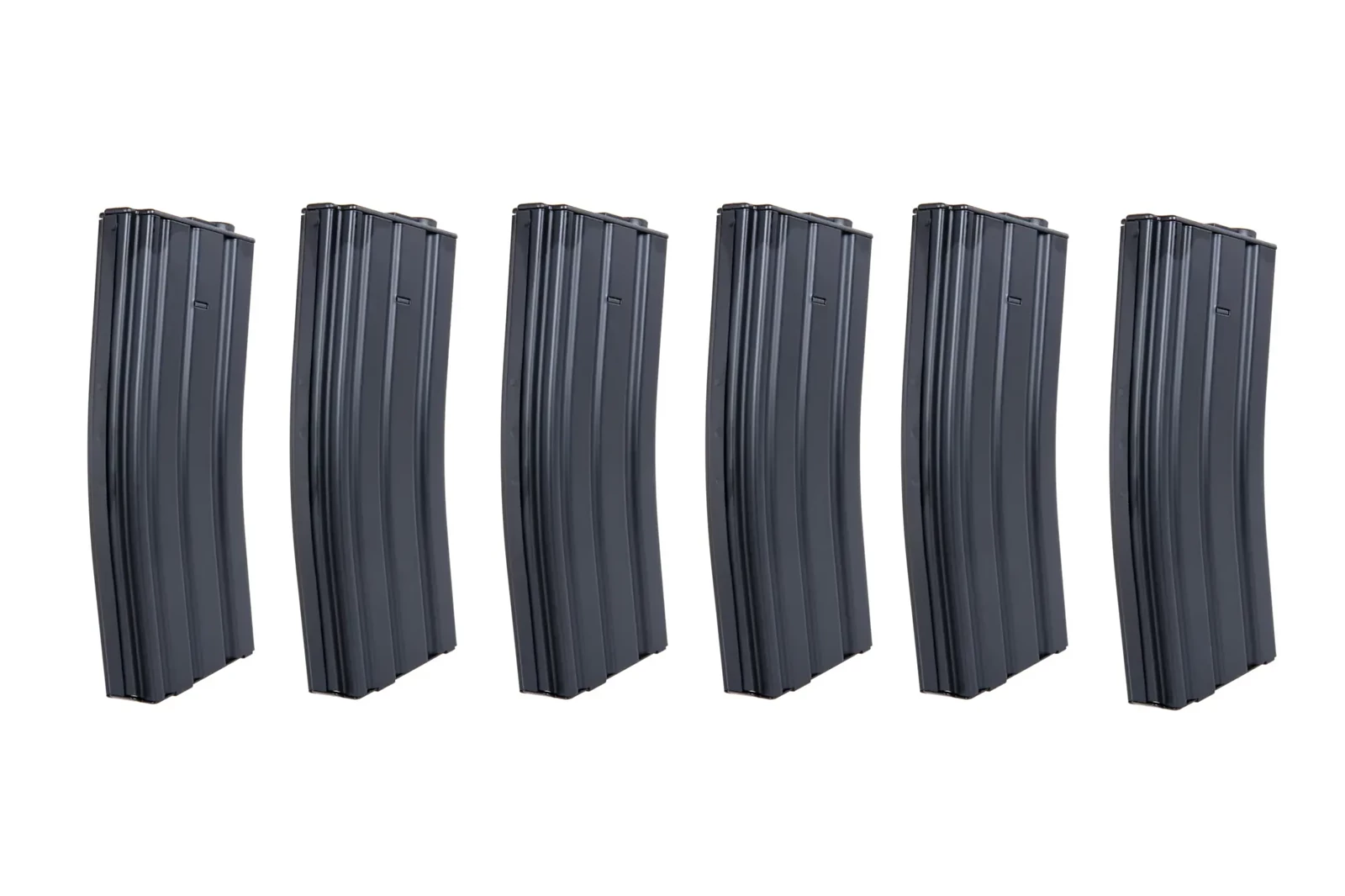 Zestaw sześciu magazynków stalowych typu STANAG o pojemności 70 kulek.